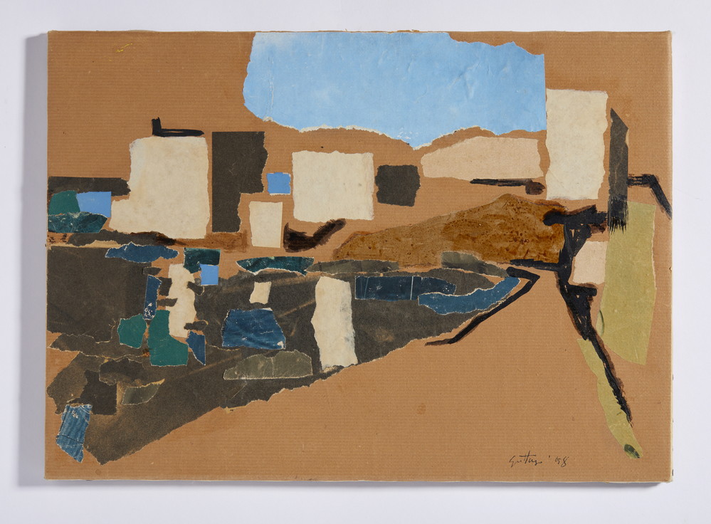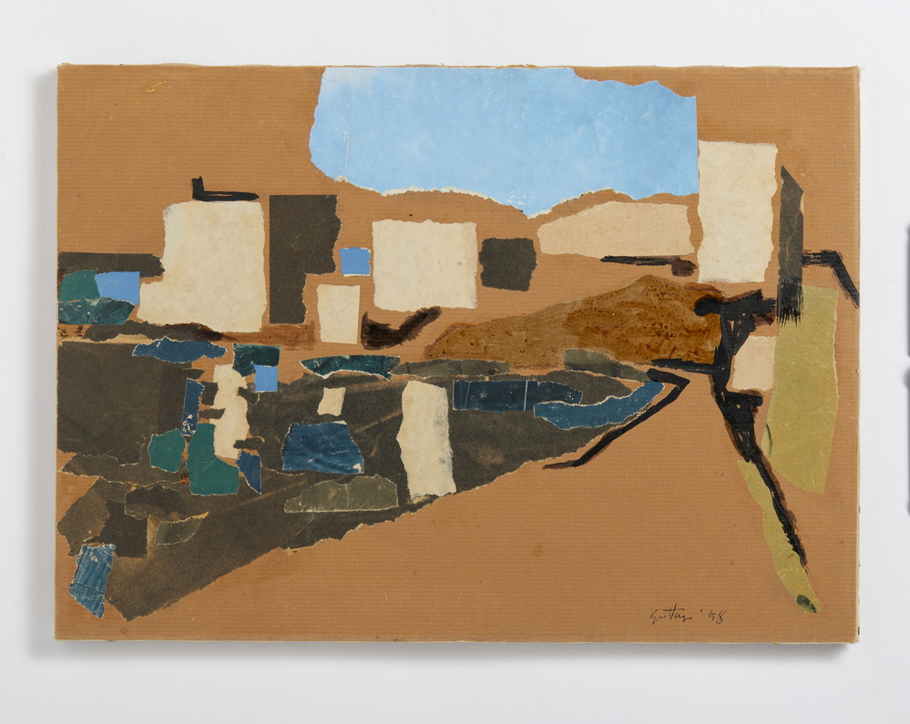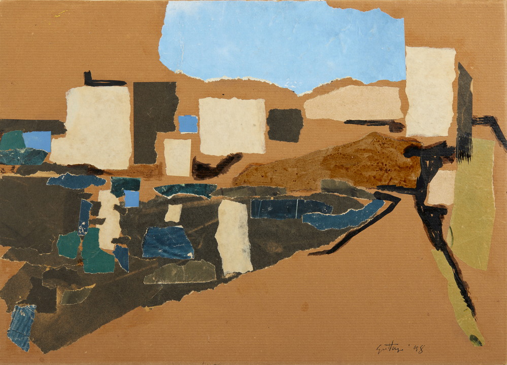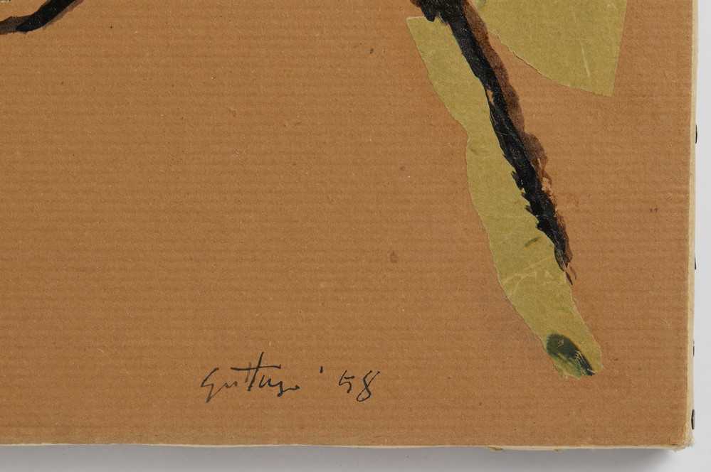 GUTTUSO RENATO (1912 - 1987) SENZA TITOLO. 1958. tecnica mista e collage su carta intelata. Cm 44,00 x 32,00. firma e data
