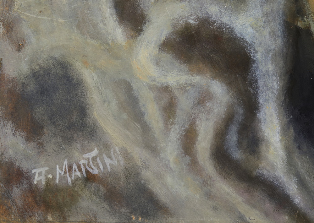 MARTINI ALBERTO (1876 - 1954) INCORONAZIONE DI MACBETH, (1940). tempera su cartone. Cm 67,50 x 47,50. firma