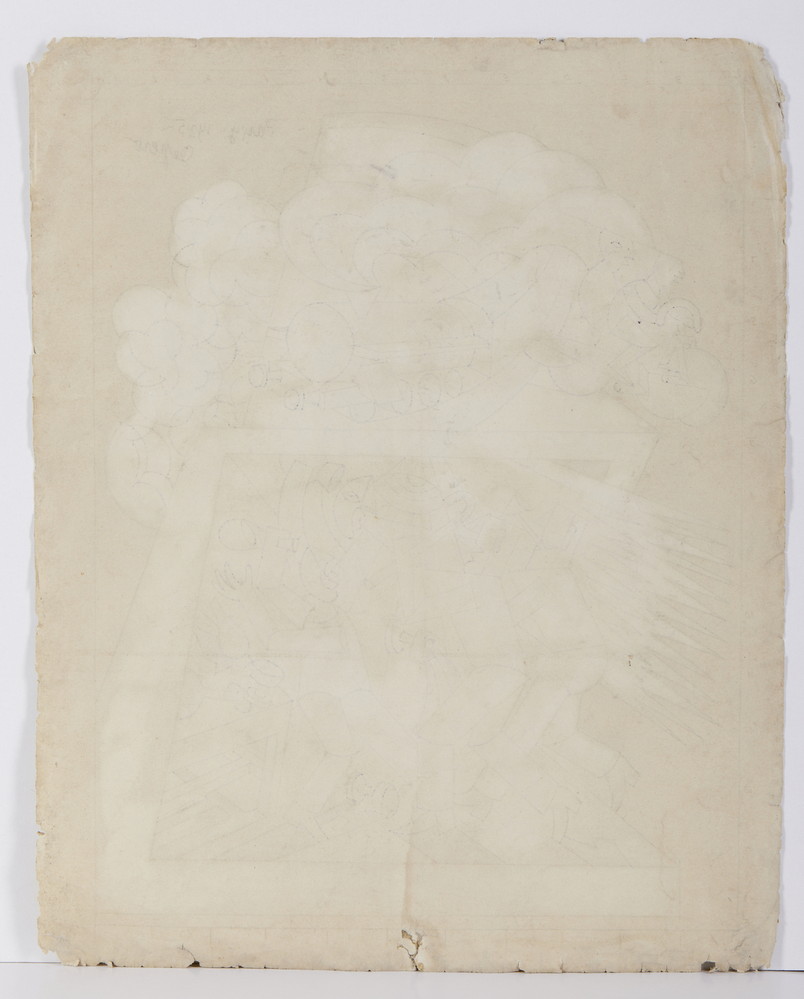 Studio finale per il dipinto "Les buveurs et la locomotive" nel quale si notano sui lati sinistro e superiore, le caselline usate per l'ingrandimento del cartone finale per lo spolvero.