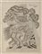 DEPERO FORTUNATO (1892 - 1960) LOCOMOTIVA, CICLISTA E RISSA, 1925. 1925. china e china diluita su carta. Cm 31,50 x 39,00. firma e data