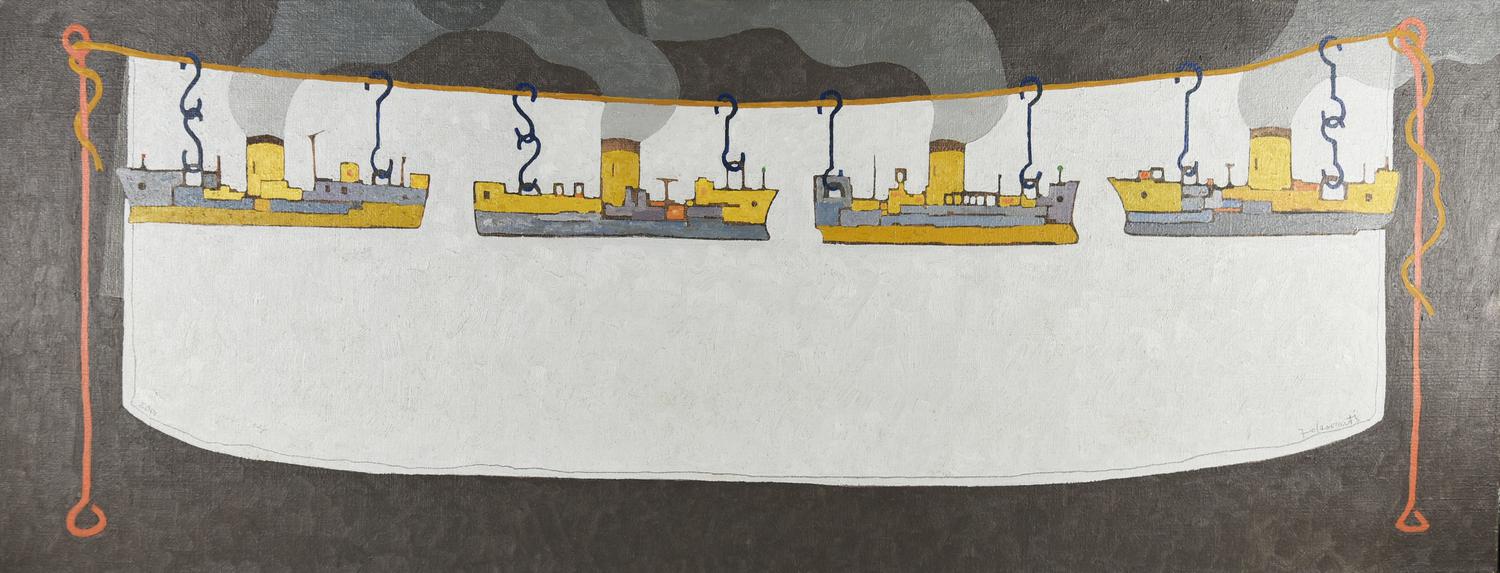 Francesco Casorati (1934 - 2013) QUATTRO NAVI APPESE, 2001 olio su tela, cm...