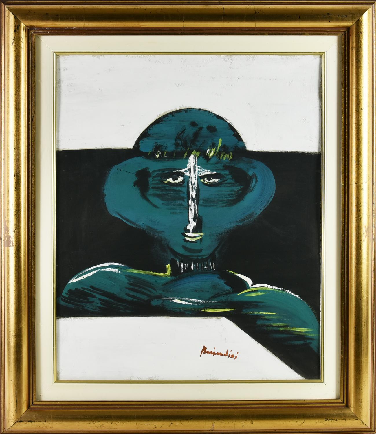 Remo Brindisi (1918 - 1996) SENZA TITOLO tempera su cartone, cm 50x40 firma...