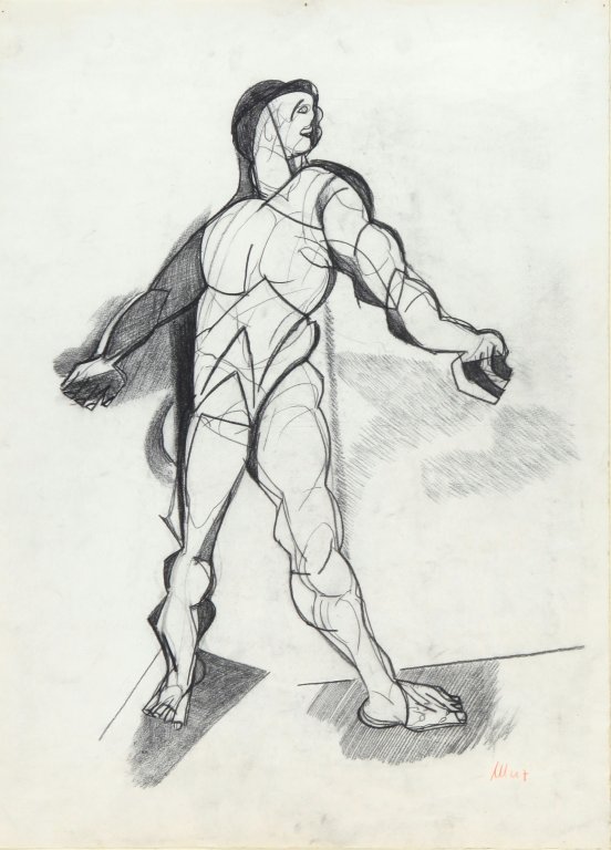 MARIO MERZ (1925 - 2003) Figura 1951 tecnica mista su carta cm 66x47,5 firmato in basso a destra sul retro: etichetta Kunstmuseum Winterthur (CH) esposizioni: Galleria La Bussola, Torino; Mario Merz disegni, Kunstmuseum Winterthur (CH) 2007 pubblicazioni: Mario Merz disegni, edizioni Fondazione Merz, 2008 Figura 1951 mixed media on paper 26x18,72 in signed lower right on the reverse: label of Kunstmuseum Winterthur (CH) exhibitions: La Bussola Gallery, Torino; Mario Merz disegni, Kunstmuseum Winterthur (CH) 2007 literature:Mario Merz disegni, edizioni Fondazione Merz, 2008