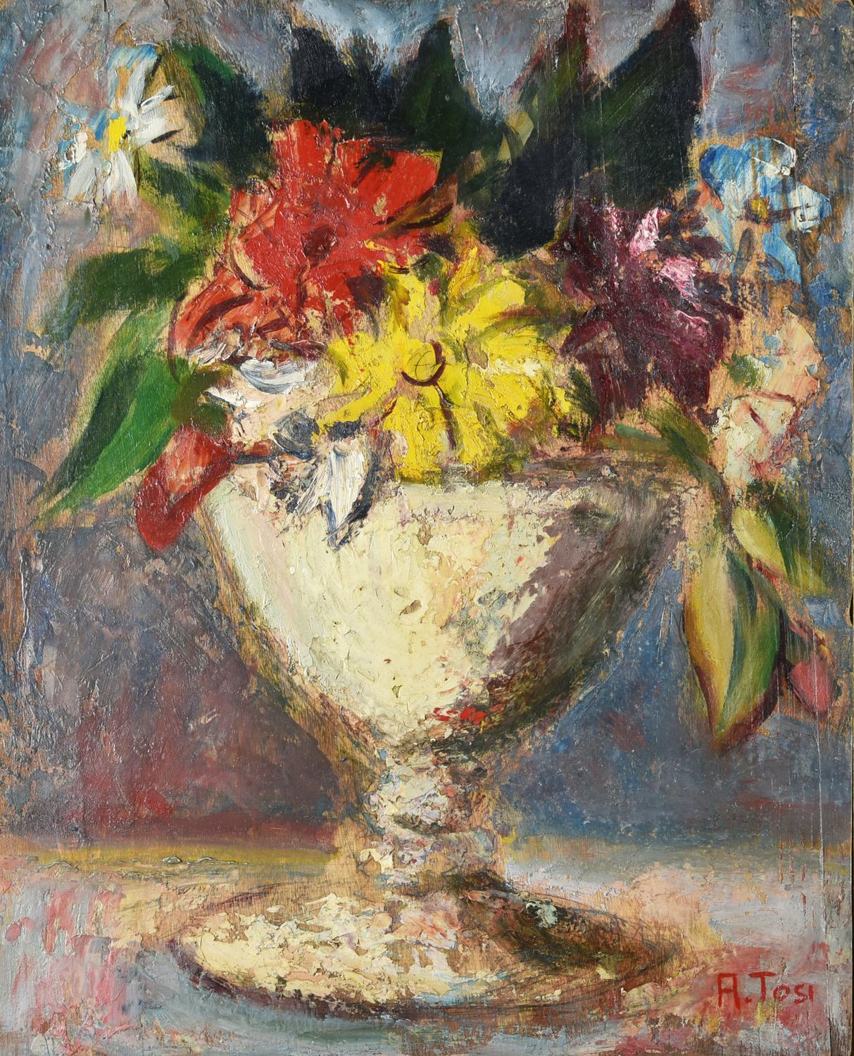 Arturo Tosi (1871 - 1956) VASO DI FIORI olio su tavola, cm 40x31,5 firma sul...