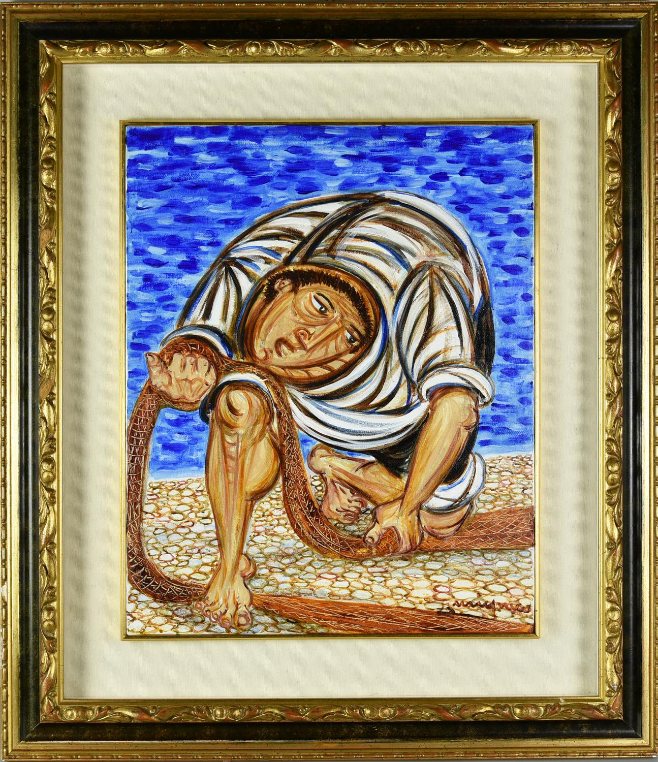 Giuseppe Migneco (1908 - 1997) PESCATORE, 1990 olio su tela, cm 50x40 firma...