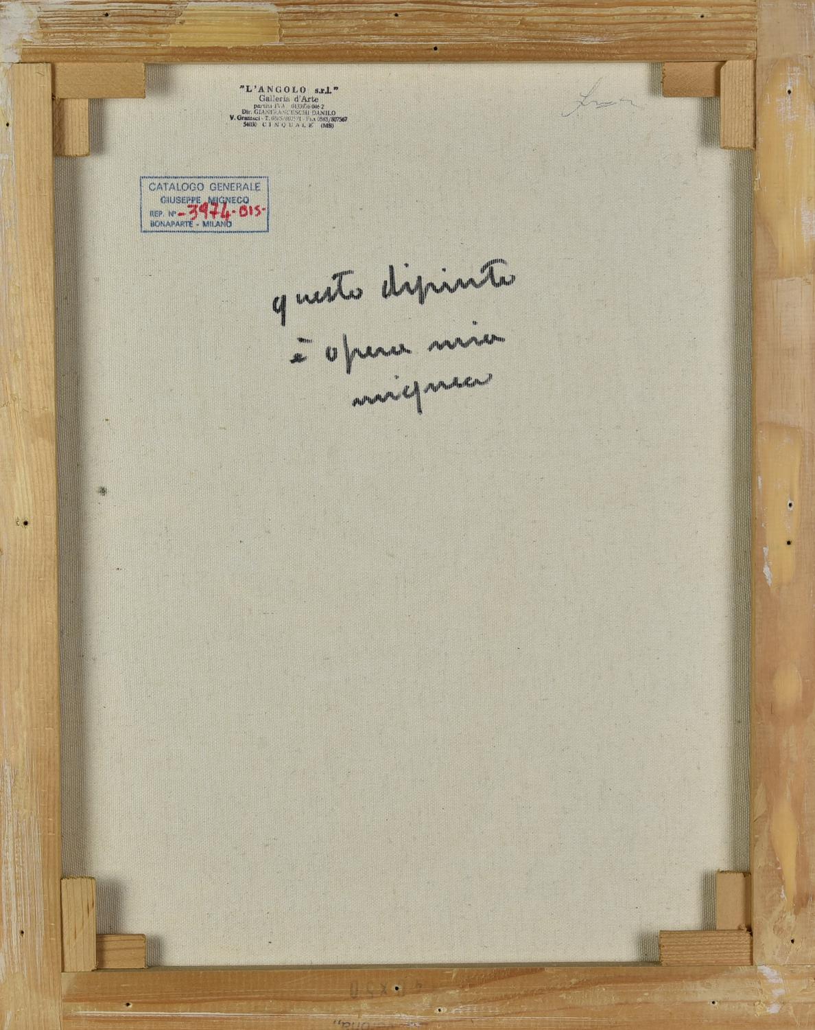 sul retro: firma, timbro Catalogo Generale Giuseppe Migneco e timbro Galleria L'Angolo, Cinquale