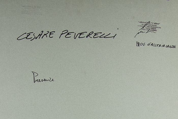 sul retro: titolo e timbri Galleria d'Arte L'Alfiere, Torino e Galleria d'Arte Lanza Egidio, Verbania Intra