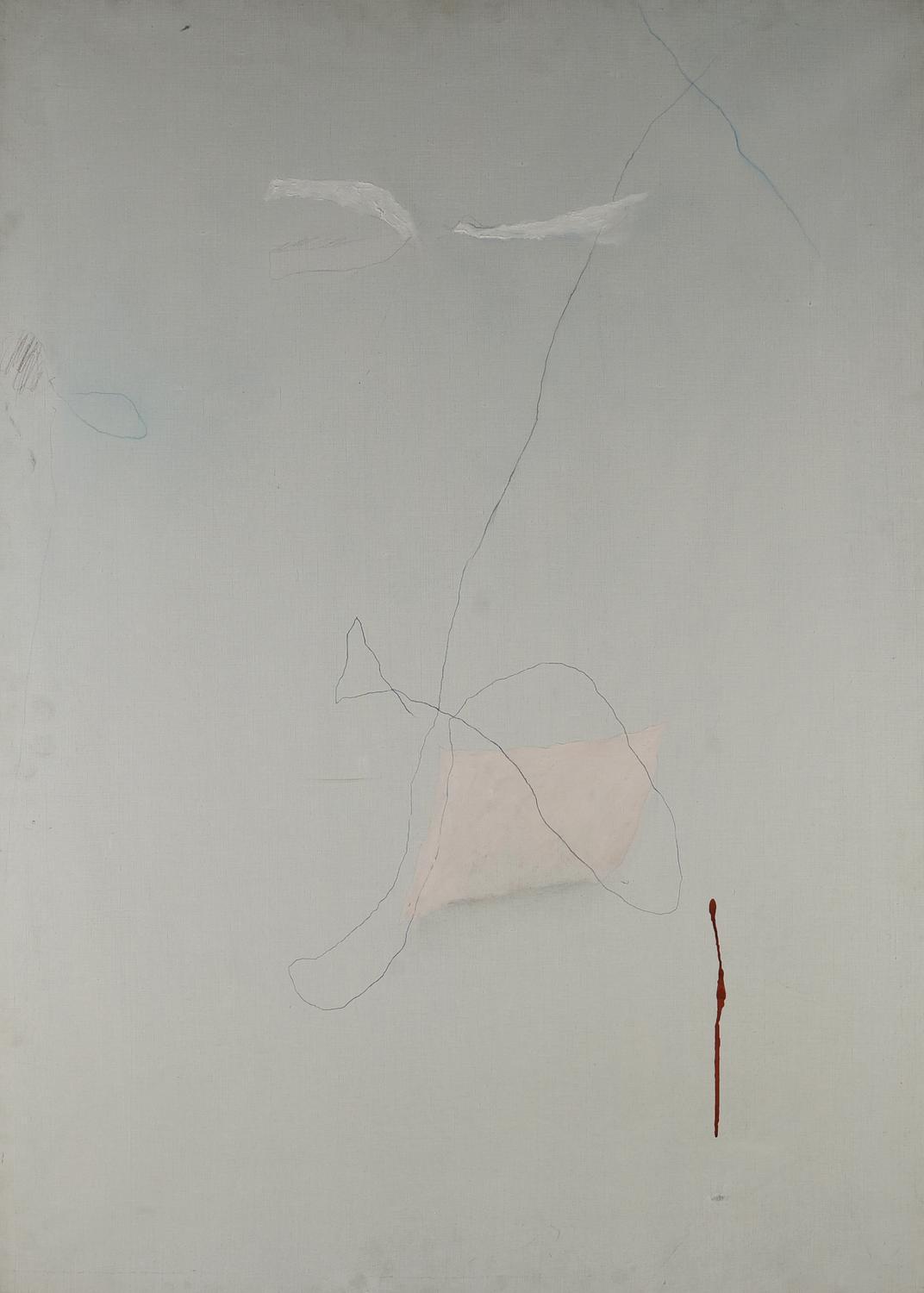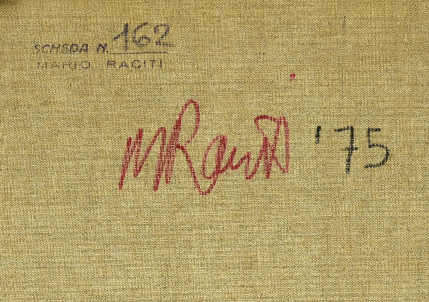 Mario Raciti (1934) PRESENZE-ASSENZE, 1975 tecnica mista su tela, cm 100x70...