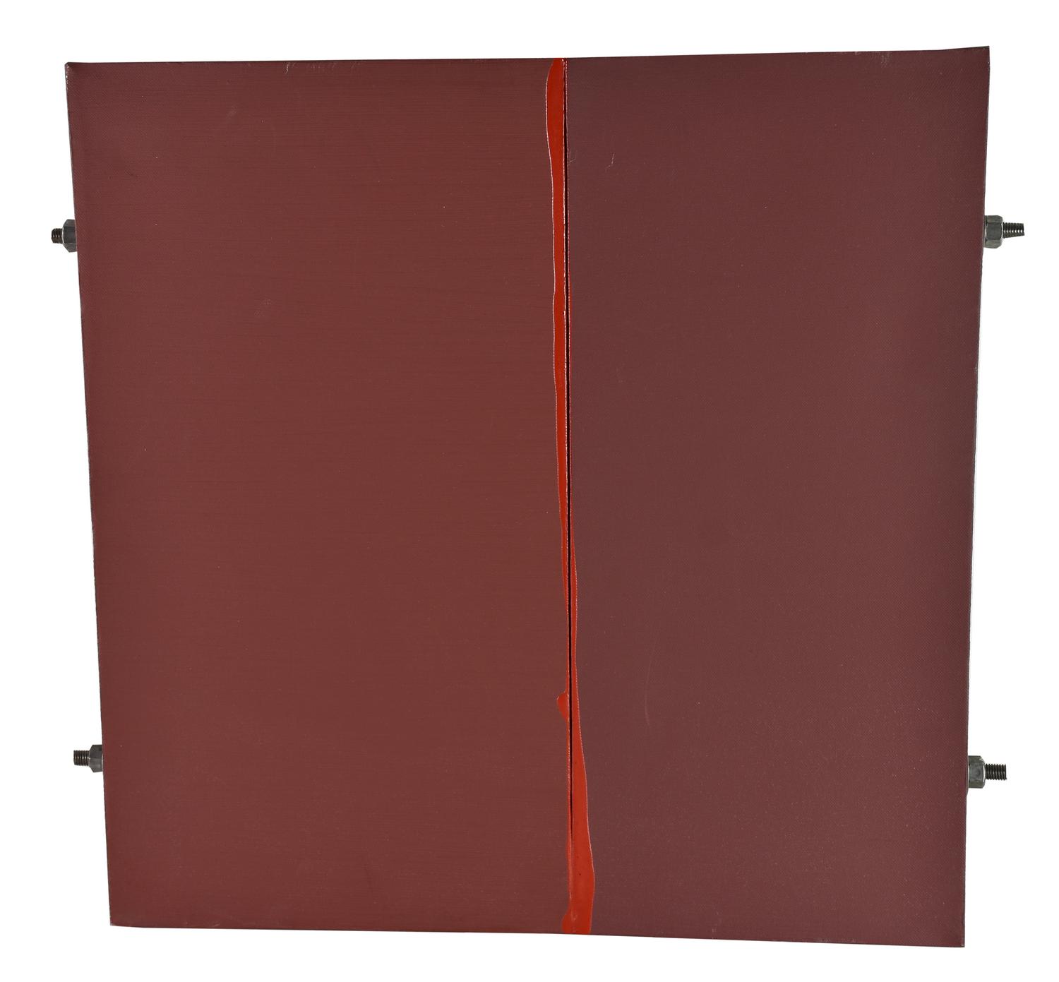 dittico di tele adiacenti dipinte in acrilico con multigum e ferro, cm 50,5x55x4,5
