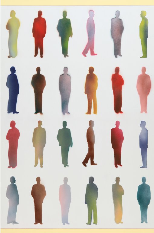 RENATO MAMBOR (1936) Posizioni filosofiche 1 2008 acrilico su tela cm 150x100 firmato datato e titolato sul retro autentica dell'artista su foto pubblicazioni: Catalogo della mostra, Anversa 2008 Posizioni filosofiche 1 2008 acrylic on canvas 59,01x39,4 in signed dated and titled on the reverse photo certificate by the artist literature: exhibition catalogue, Anversa 2008