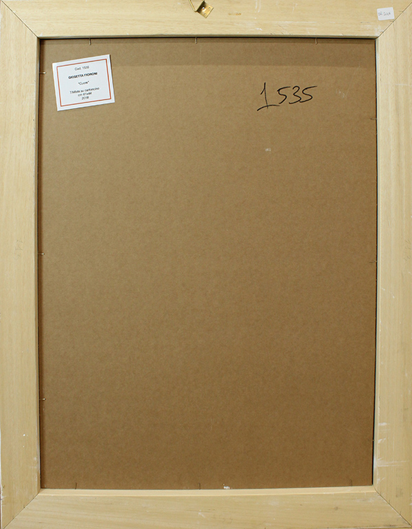 GIOSETTA FIORONI, "Cuore", 2018, smalti e tecnica mista su cartoncino, 71,5x54,5 cm, con cornice 84x67x4 cm, peso 4,50 kg. Opera con autentica su foto dell'artista. Al fronte: anno e firma in basso a destra. Al verso: etichetta in alto a sinistra con informazioni. Opera con cornice.