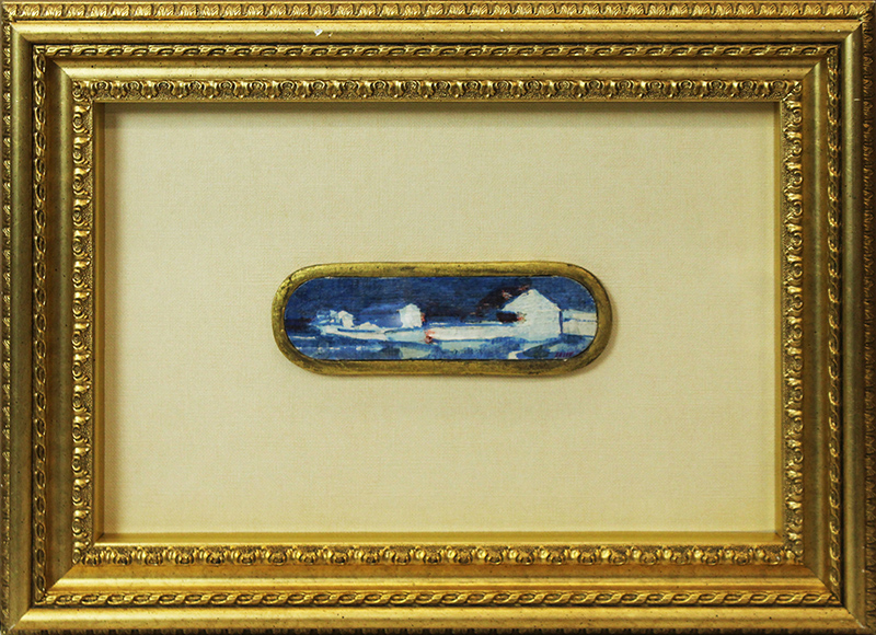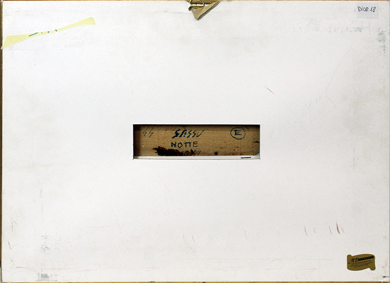 ALIGI SASSU, "Notte", 1977, olio e acrilico su tavola, 4,5x17,5 cm, con cornice 35x49x5 cm, peso 2,30 kg.Opera archiviata dalla Fondazione Helenita e Aligi Sassu al N°77AOO52, Milano, 9 febbraio 2023. Al fronte: in basso a destra. Al verso: firma e titolo al centro. Opera con cornice.