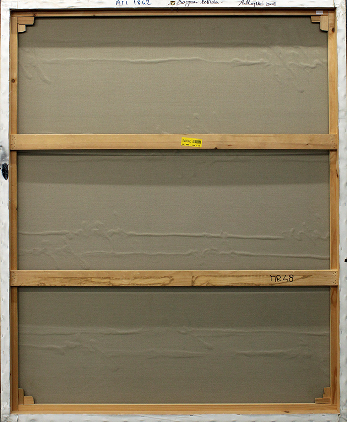 ALFREDO RAPETTI, "Doppia Lettura", 2008, acrilico su tela, dim 165x135, opera autenticata su foto dell'artista al N°MR 48 con timbro Art Time srl, Corso Palestro. Al verso: in alto a destra titolo, firma e anno, in basso a destra numero d'archiviazione.