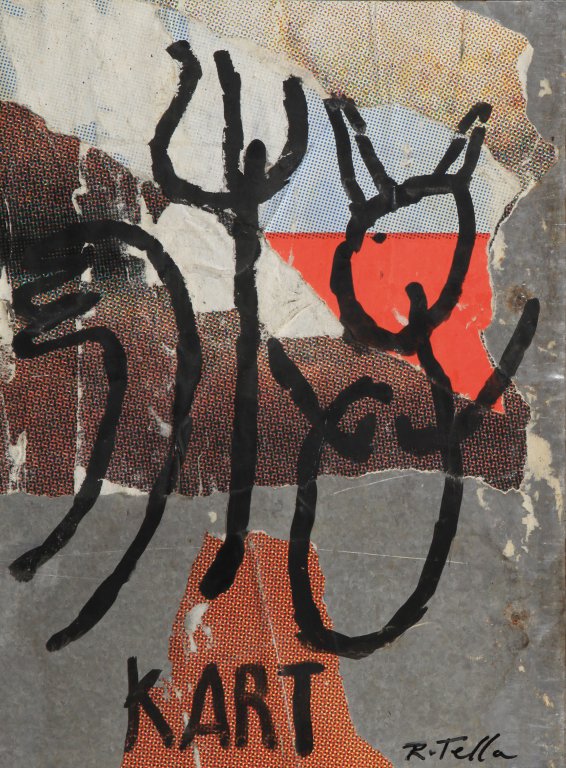 MIMMO ROTELLA (1918 - 2006) Kart 1993 sovrapittura su decollage su lamiera cm 35x25,5 firmato in basso a destra datato e titolato sul retro sul retro: etichetta e timbro della Galleria Fumagalli, Bergamo esposizioni: Galleria Fumagalli, 17 gennaio-22 febbraio 1998 Kart 1993 paint on decollage on metal sheet 13,79x10,05 in signed lower right dated and titled on the reverse on the reverse: label and stamp of Fumagalli Gallery, Bergamo exhibitions: Fumagalli Gallery, 17th january-22nd february 1998