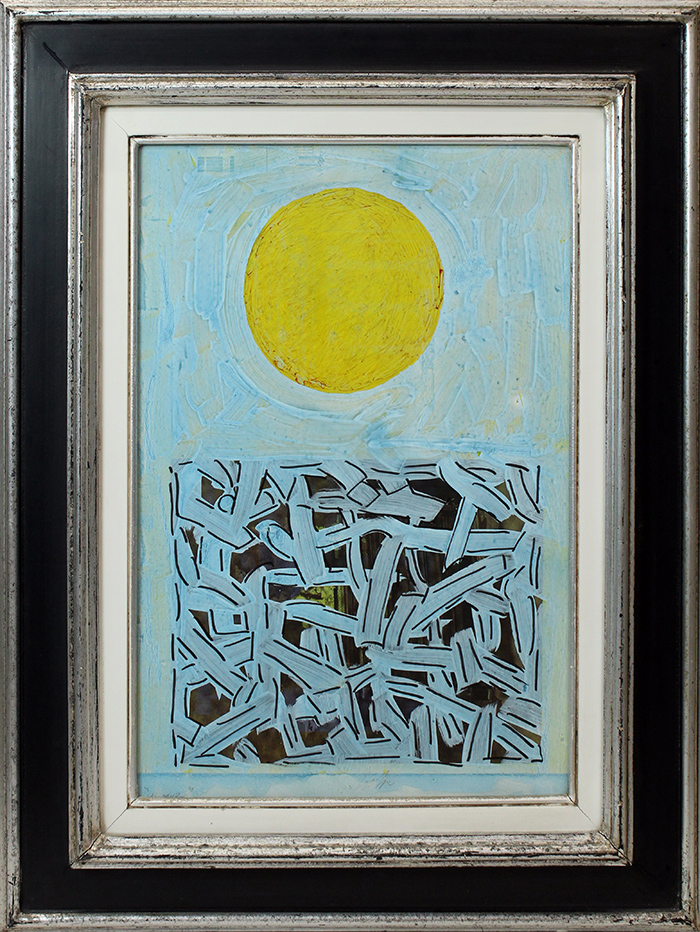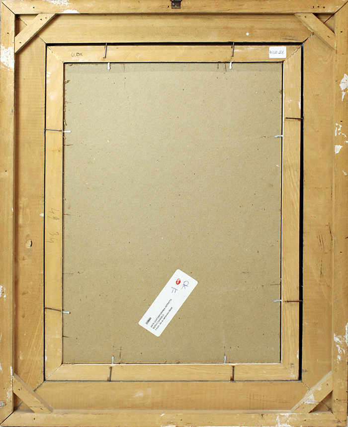 SERGIO DANGELO, "Il Muro", anni '60, tecnica mista su cartone, 49x34 cm, con cornice 71x56x8 cm, 3,50 kg. Opera con autentica. Al fronte: firma in basso al centro. Al verso: etichetta in basso al centro. Opera con cornice.