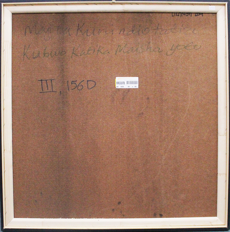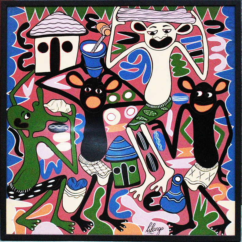 LILANGA, "Maji iw kui ndio tatizi kubwa katika maisha yotu" (L’acqua è il problema più grande nella vita di tutti noi), Anni 2000, Acrilico su faesite, Dim. 80x80. Al verso: titolo e firma. Al fronte: firma in basso