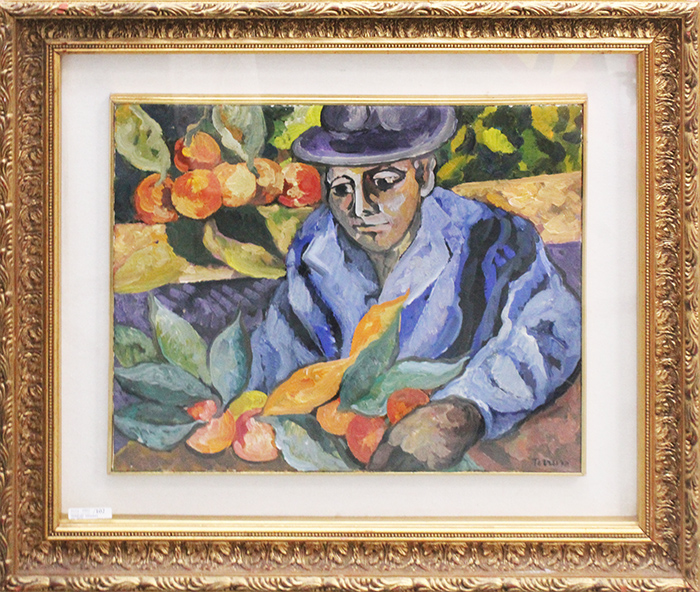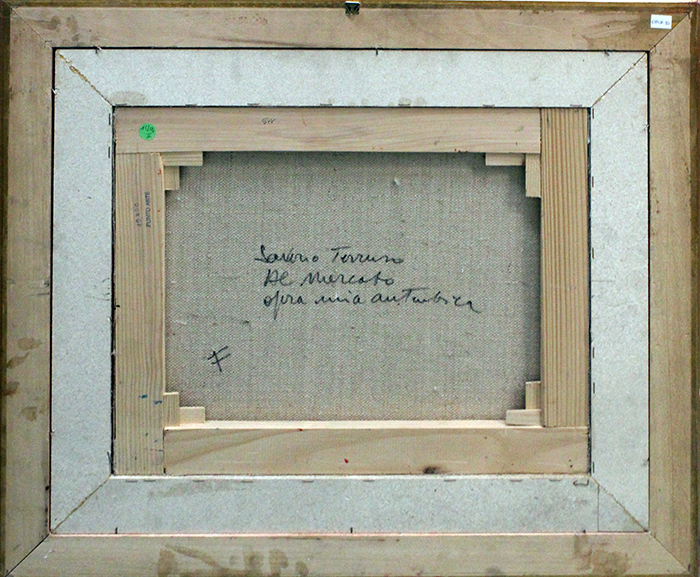 SAVERIO TERRUSO, "Al mercato", anni 90, olio su tela, dim 40x50, certificato di autenticità della Galleria D'Arte Massante. Al fronte: firma in basso a destra. Al verso: firma in basso a destra. Al verso: firma, data, dichiarazione di autentictà dell'artista