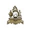OROLOGIO in metallo dorato e onice bianco raffigurante figura femminile Nord Europa XIX - XX secolo h cm 29 x 25 x 10