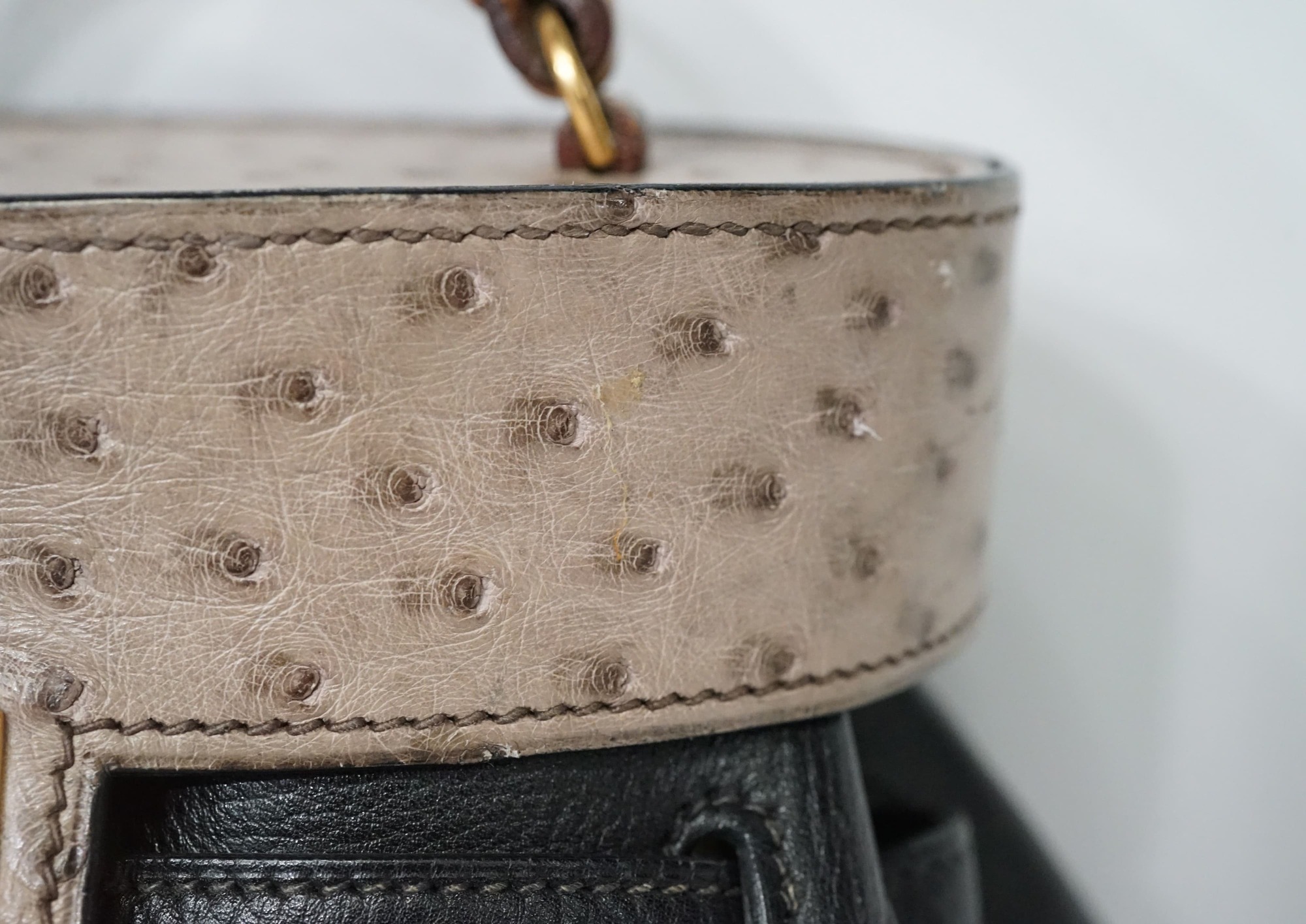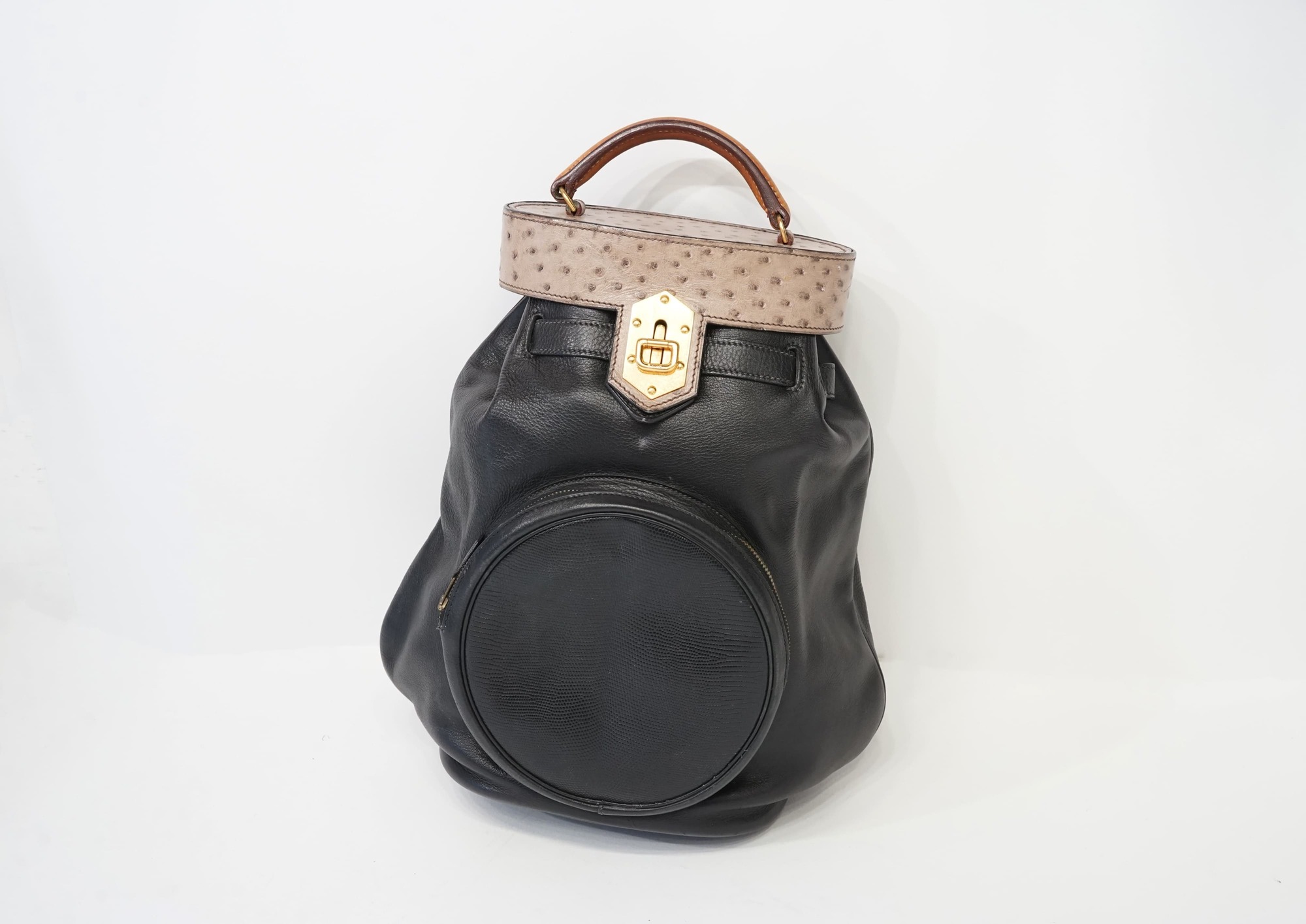 Cm. h 40x18x34 circa.Secchiello in pelle nera e struzzo. Buone condizioni, lievi segni di usura.