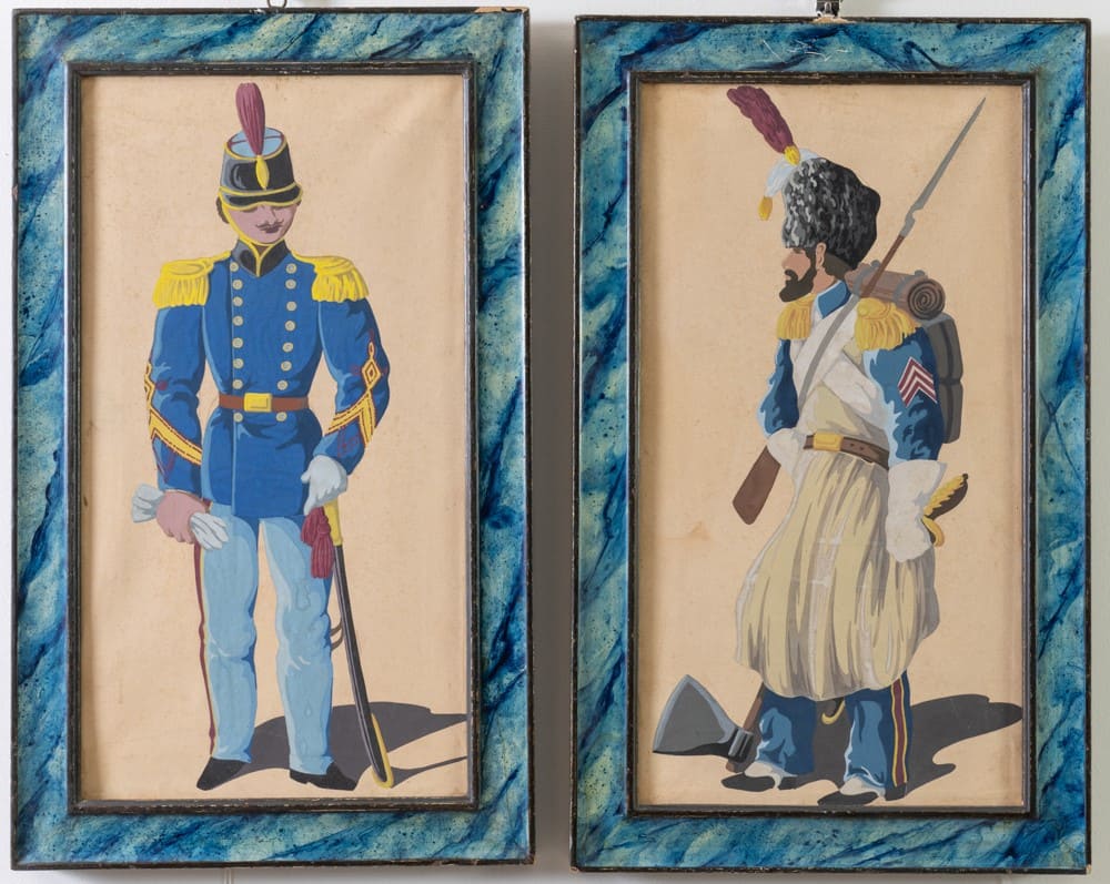 Coppia di tempere su carta.Cm. in cornice 64x39 ciascuno.Cornici in legno laccato decorato a finto marmo. Difetti.