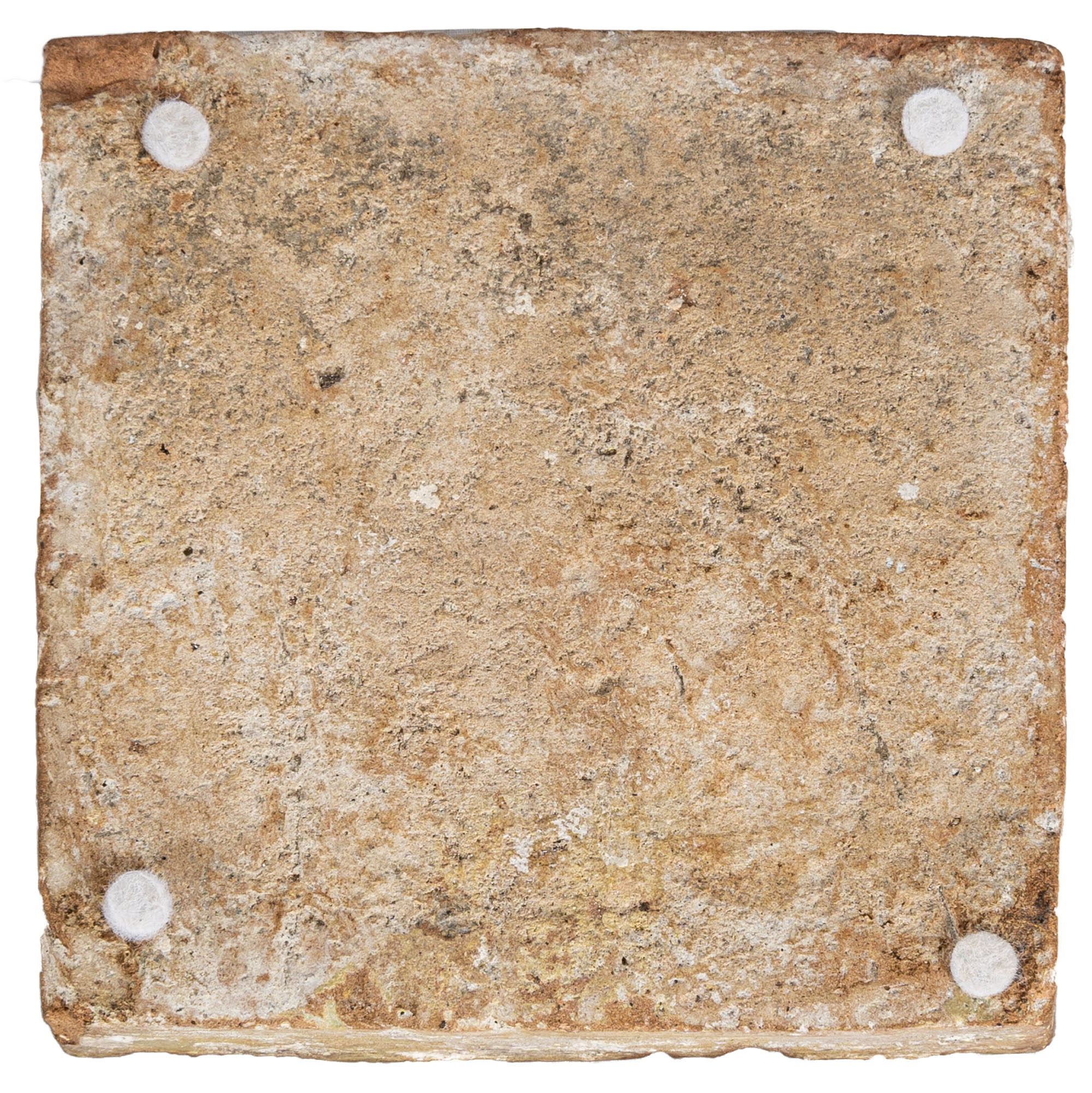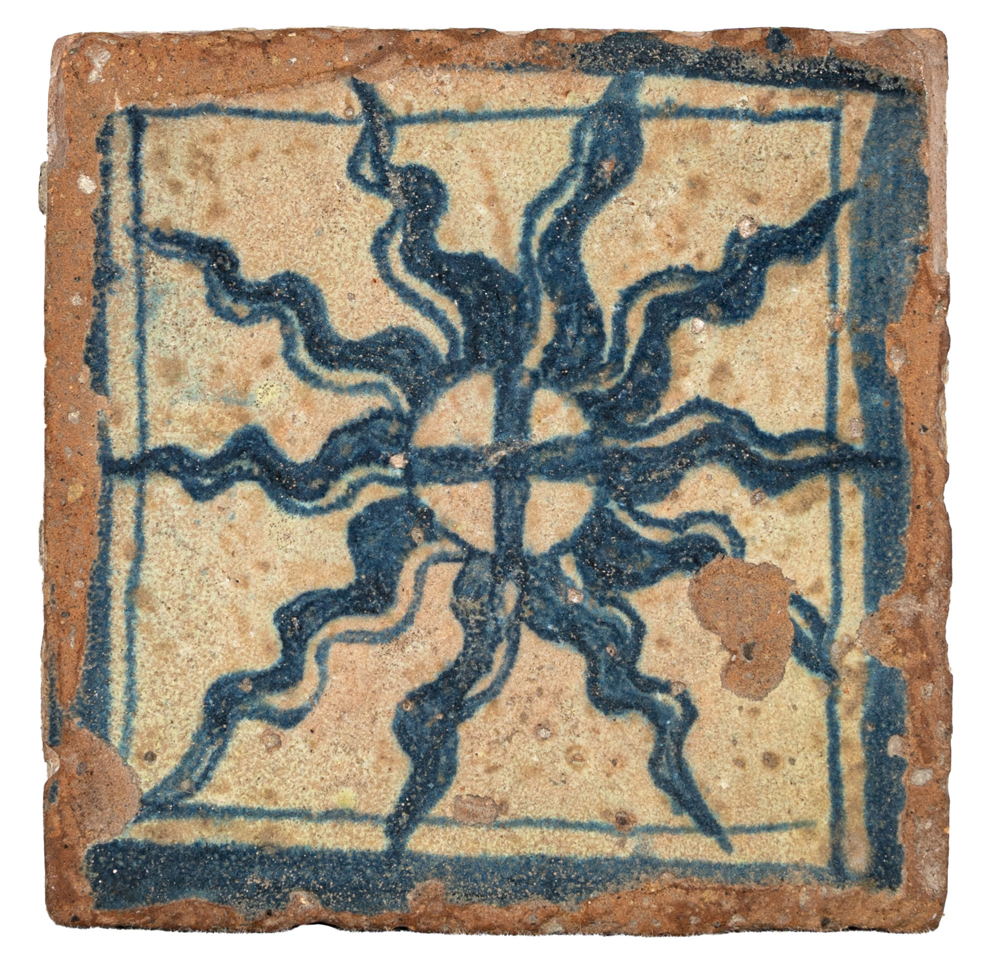 Manifattura del secolo XX (?)Piccola mattonella in maiolica decorata con sole10 x 10 cmPROVENIENZA:Collezione privata, Milano