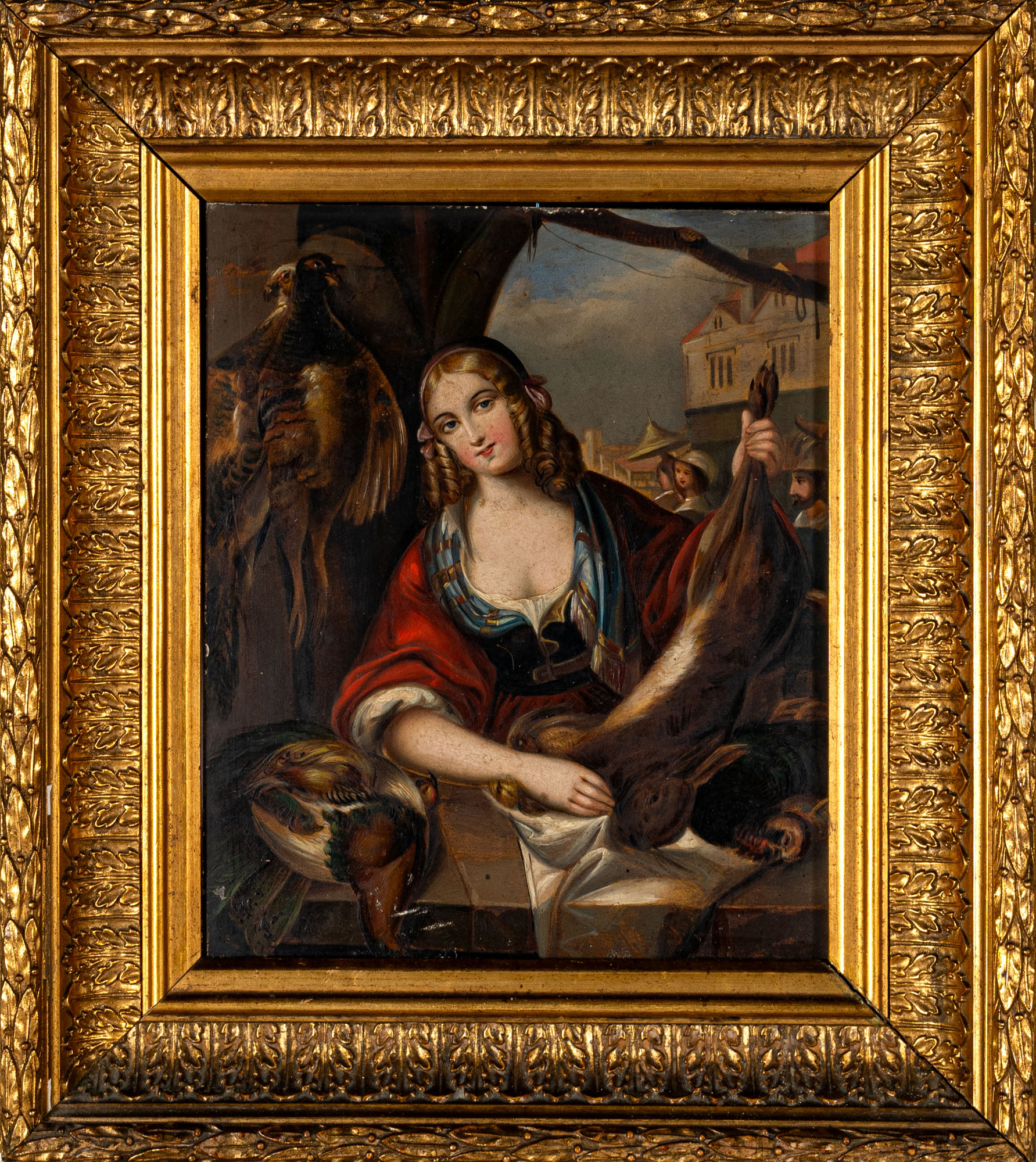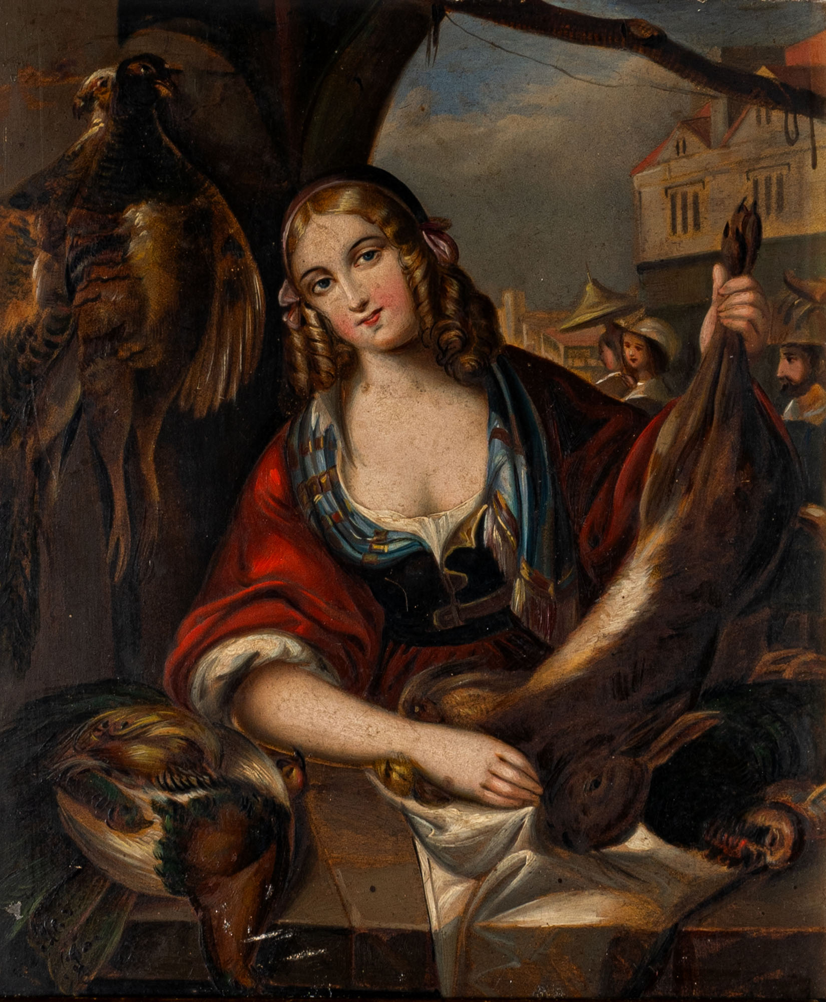 Scuola olandese (?) del secolo XVIII - La vivandieraOlio su metallo20,2 x 17 cm