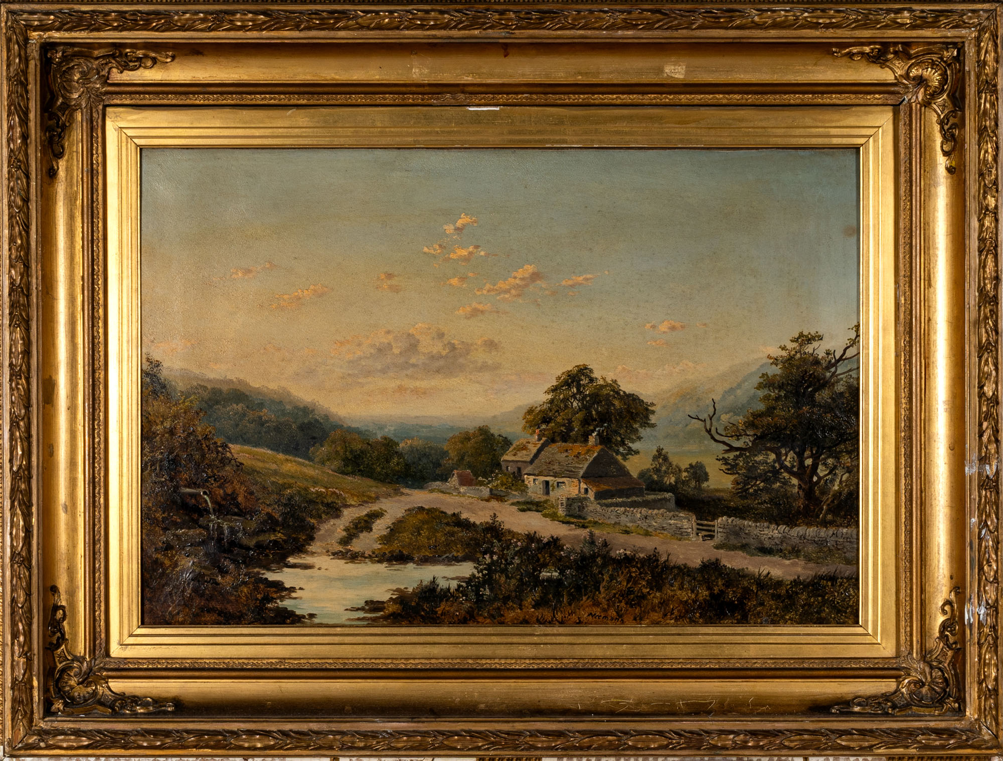 Scuola inglese (?) del secolo XIX - Paesaggio lacustre con fattoriaOlio su tela50 x 77 cm