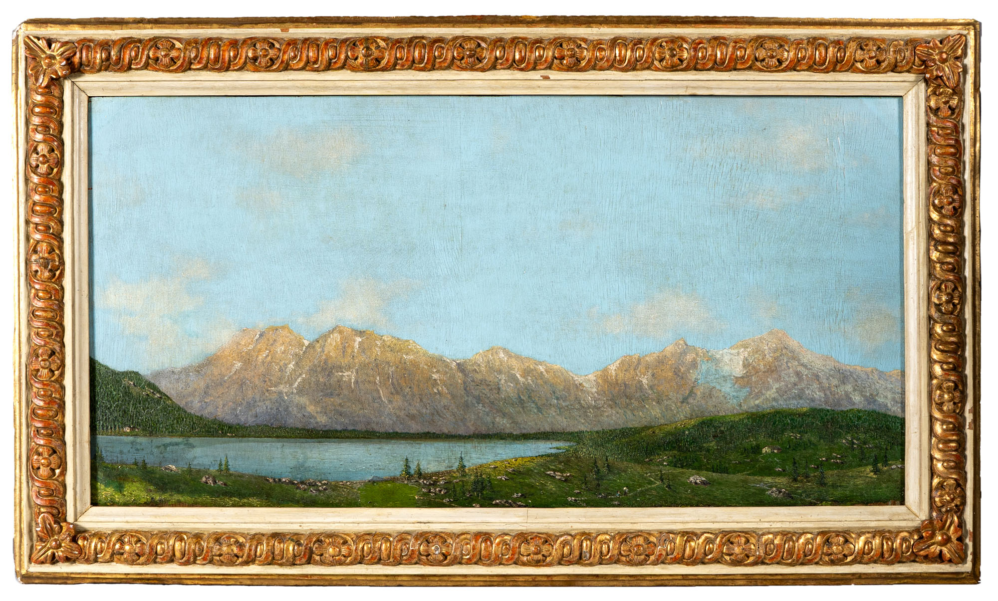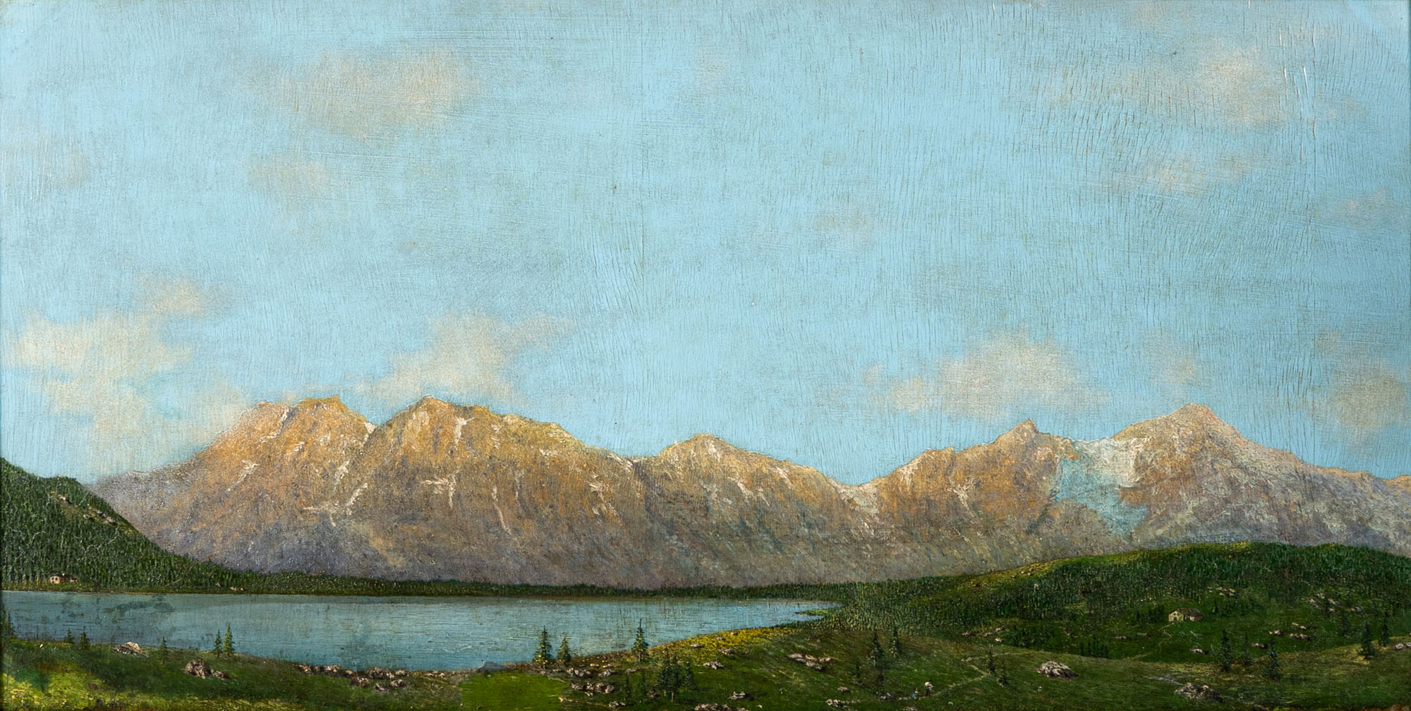 Emilio Eugenio Longoni (Barlassina, 1859 - Milano, 1932) - Veduta di montagnaOlio su tavola72 x 120 cm