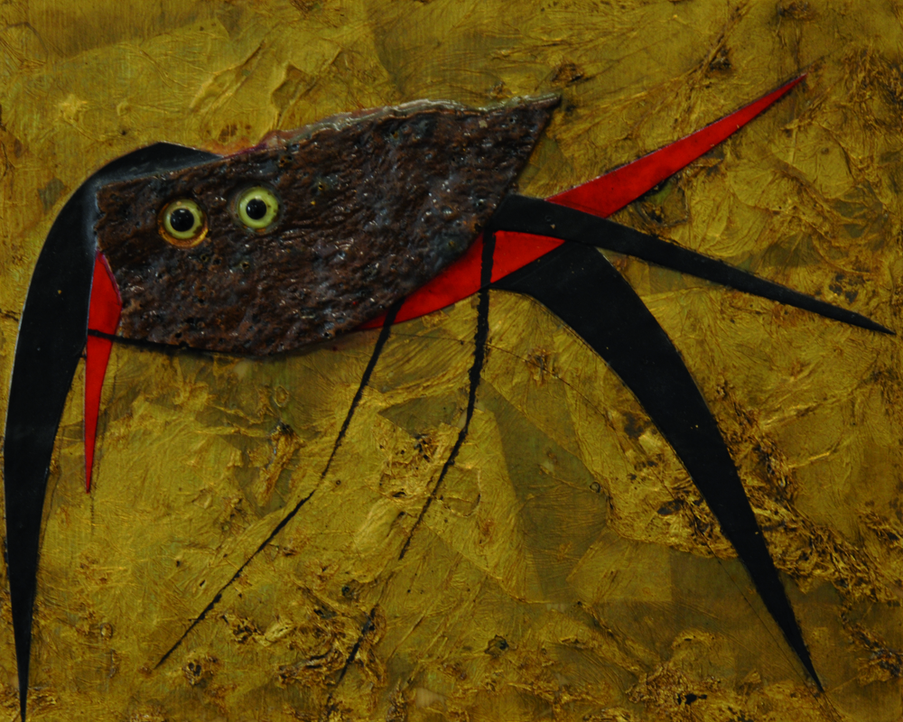 Firmato, datato. ROBERTO CRIPPA (1921 – 1972) - " Uccello mitologico ", 1971, Collage su tavola, cm. 33 x 41. Firmato e datato sul retro. Prov. Collezione Privata