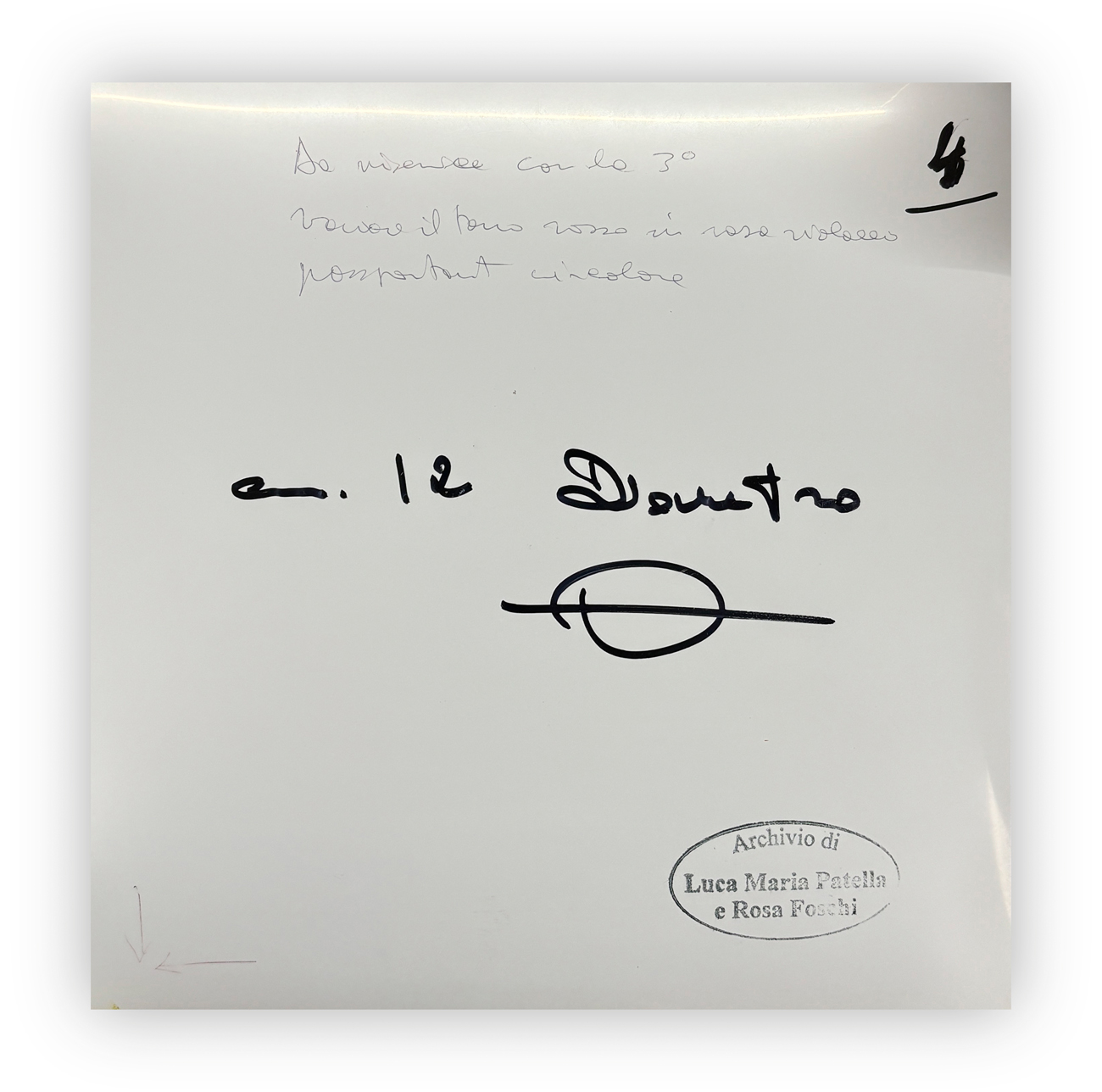 Iscrizioni e timbro dell'Archivio Luca Maria Patella e Rosa Foschi al retro