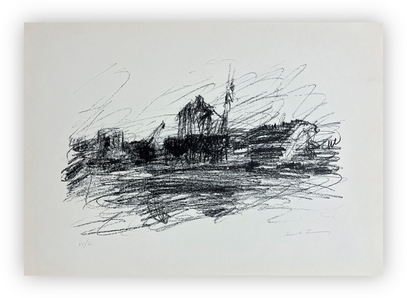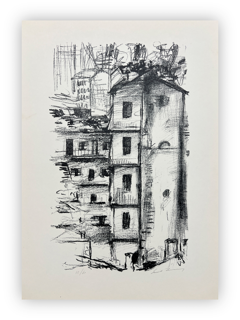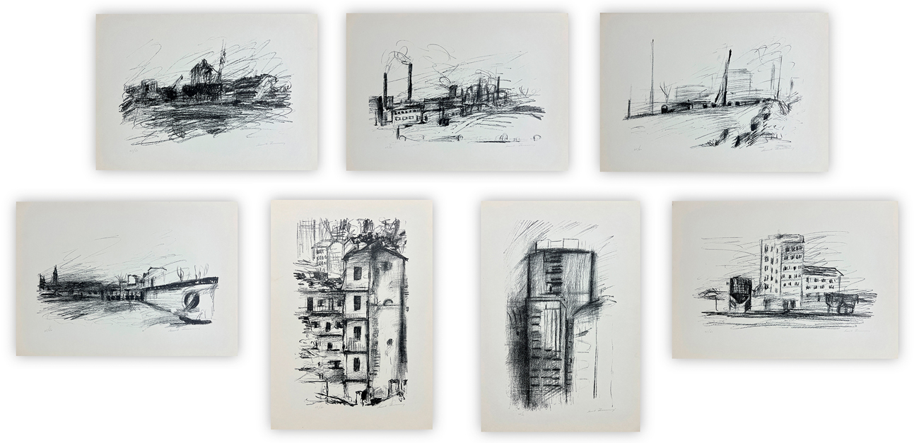 Cartella recante testi di Osvaldo Patani e 7 litografie di Ernesto Treccani, ciascuna recante firma e numerazione (Esemplari 35/60) a matita al fronte