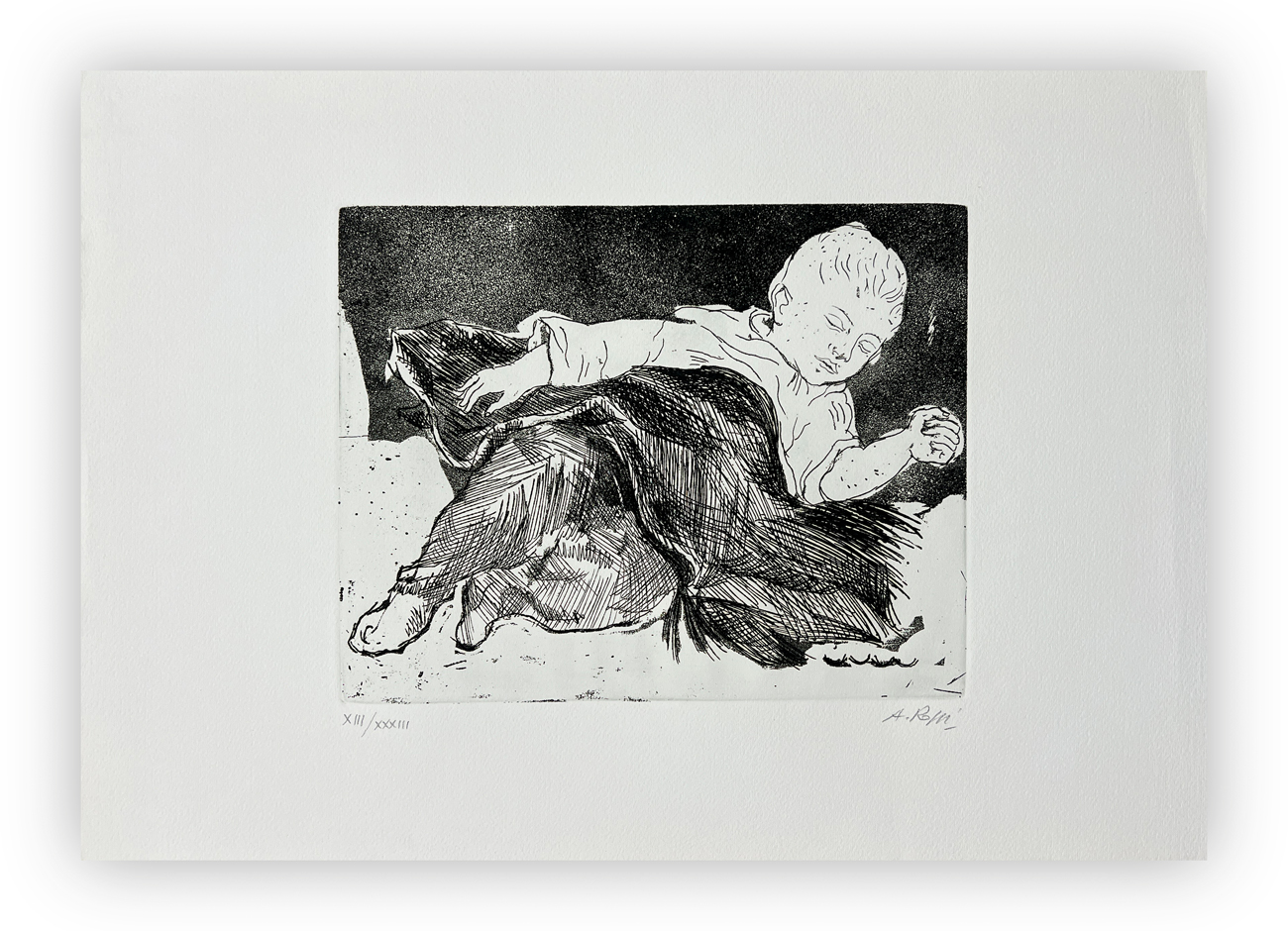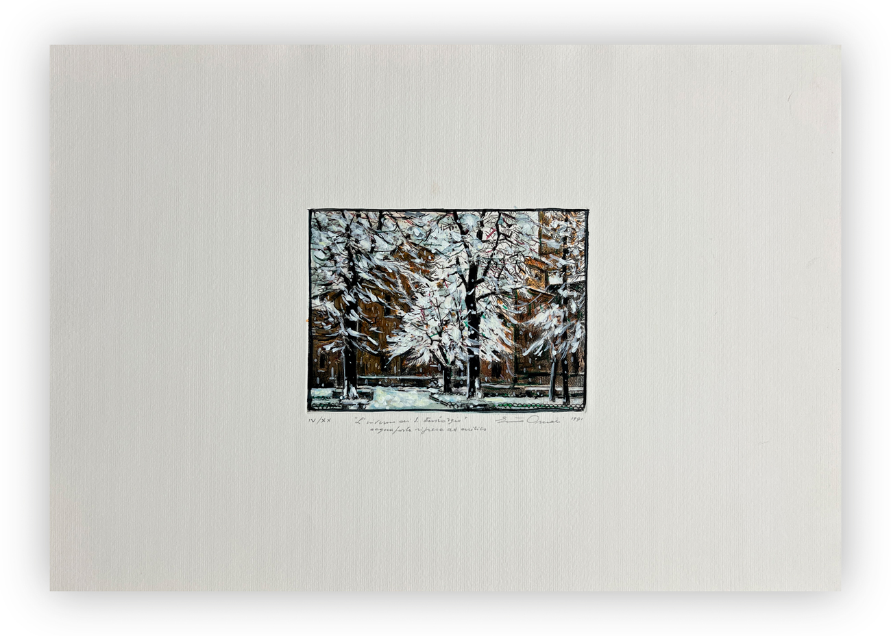 Firma, titolo, tecnica, datazione e numerazione (Esemplare IV/XX) a matita al fronte