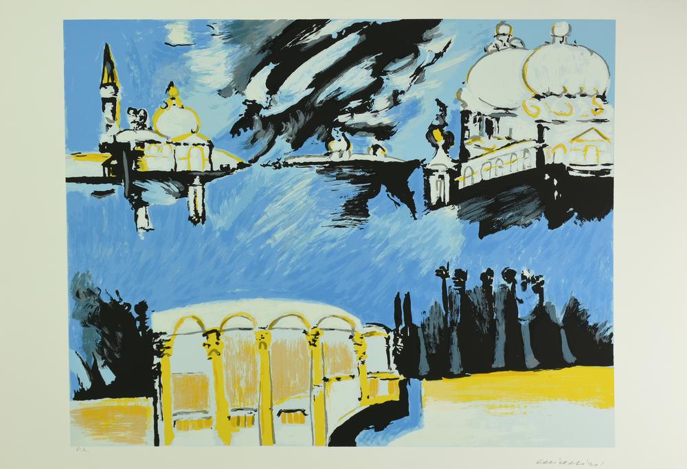 Remo Brindisi VEDUTA VENEZIANA serigrafia su carta, cm 50x70; es. P.A. firma...