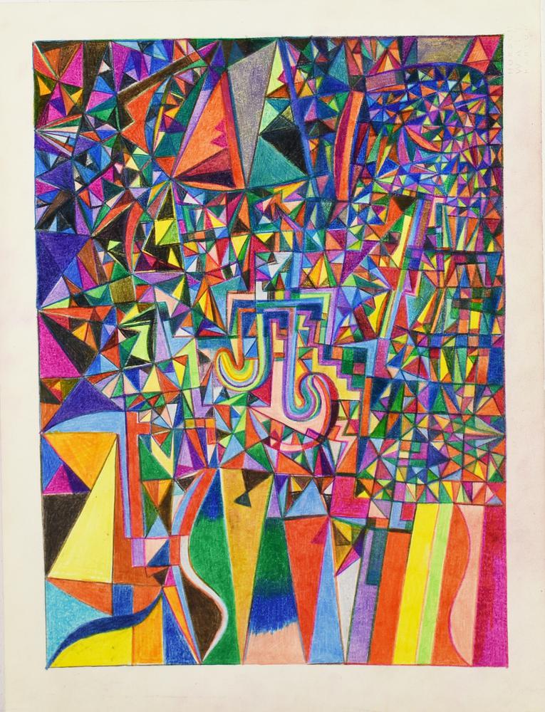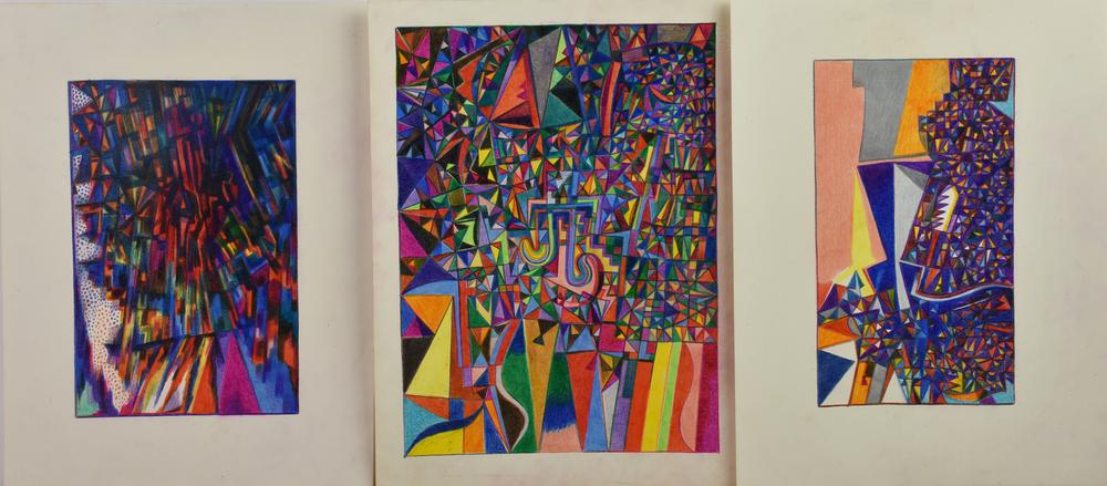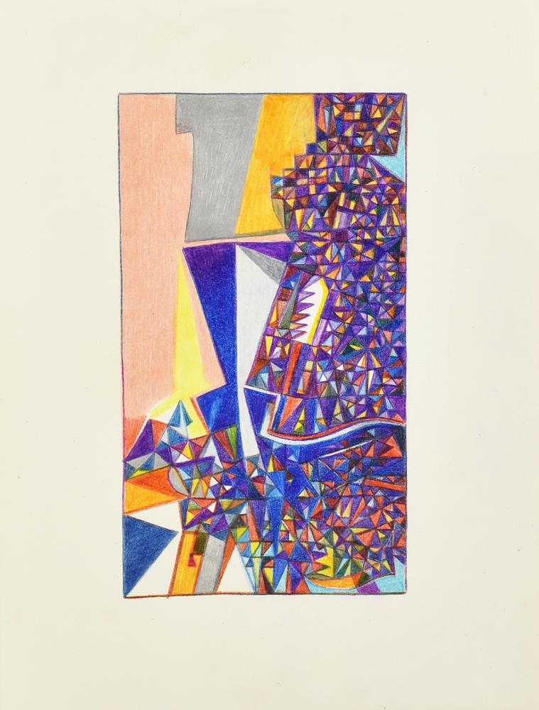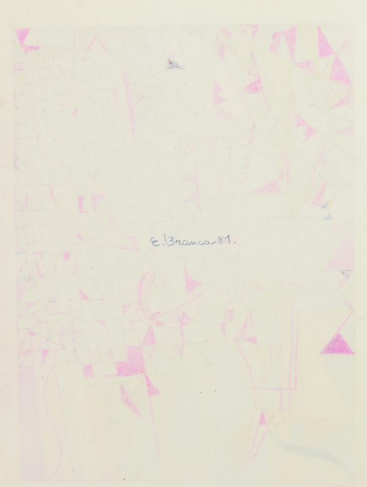 Enzo Branca COMPOSIZIONI, 1981 -matite colorate su carta, cm 33x25 sul retro:...