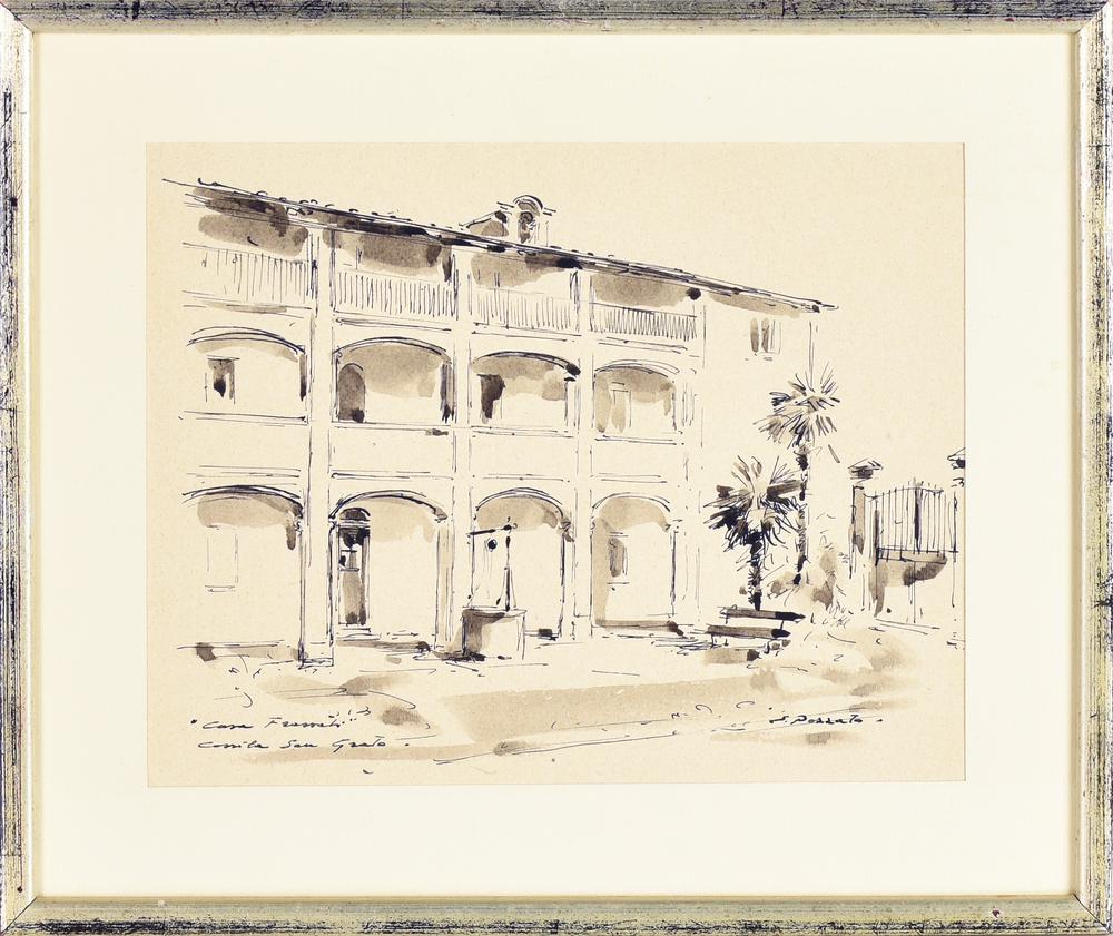 Epifanio Pozzato CASA FRASSATI COSSILA S. GRATO china acquarellata su carta,...