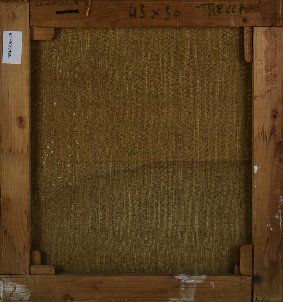 Ernesto Treccani CROCIFISSIONE, 1976 olio su tela, cm 50x45 firma sul retro:...