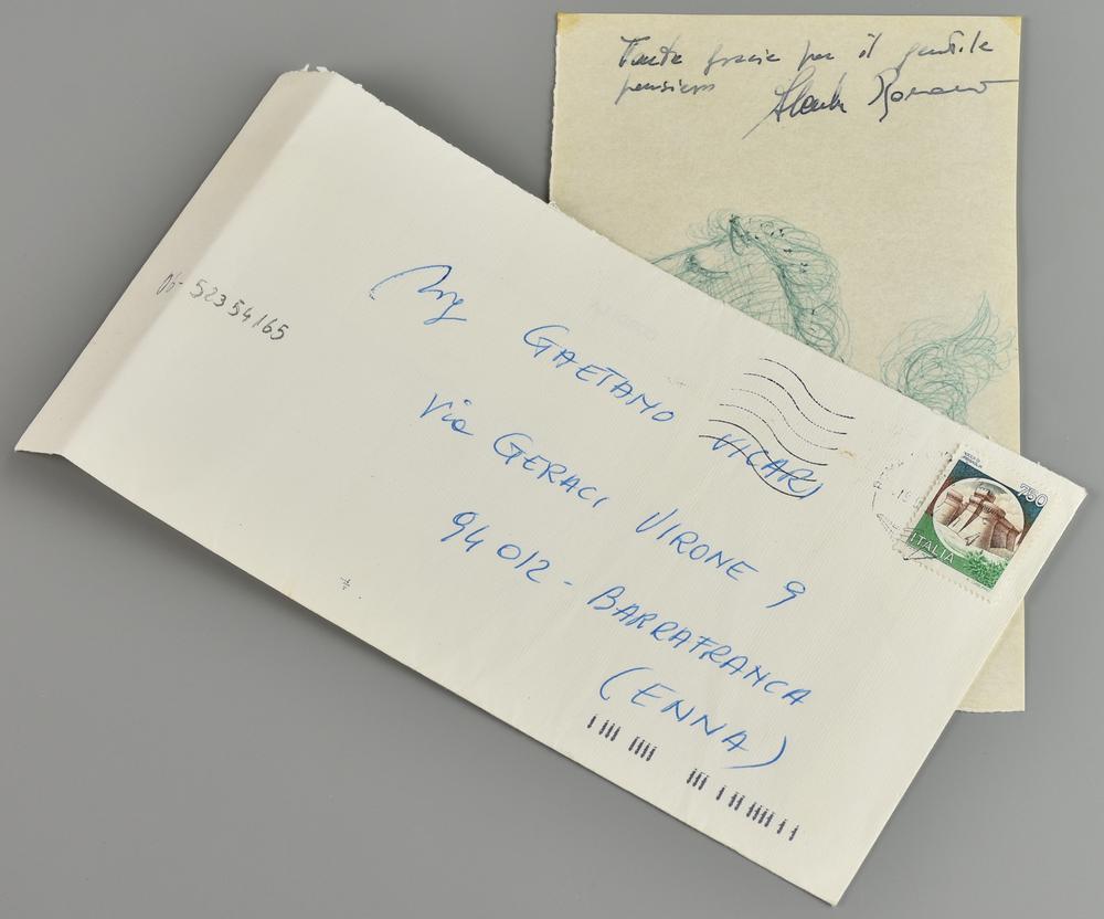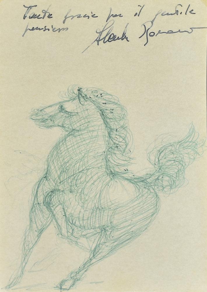 Lot 316 | Alessandro Romano CAVALLO biro su carta, cm 17,5x11 firma e dedica ad...