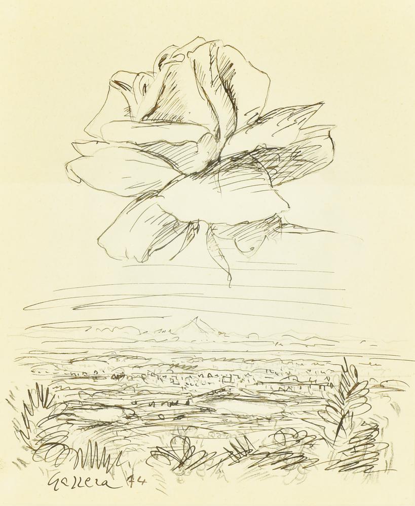 Romano Gazzera ROSA VOLANTE SUL CANAVESE, 1974 tecnica mista su carta, cm...