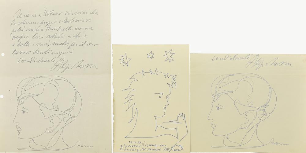Aligi Sassu LOTTO DI TRE DISEGNI biro su carta - cm 21x14 - cm 30x21 - cm...