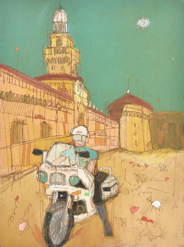 Luca Giovagnoli OMAGGIO AL VIGILE URBANO, 1994 tecnica mista su tavola, cm...
