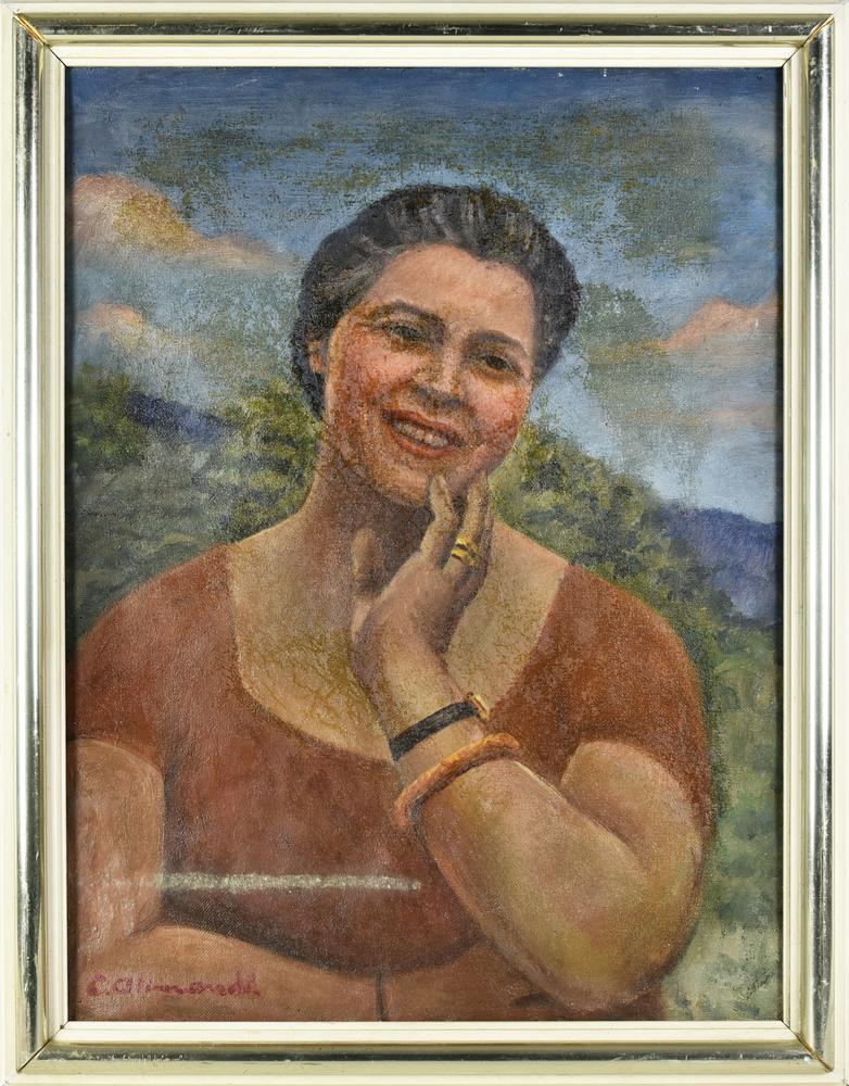 Enrico Allimandi RITRATTO DI DONNA olio su tela, cm 61x46 firma