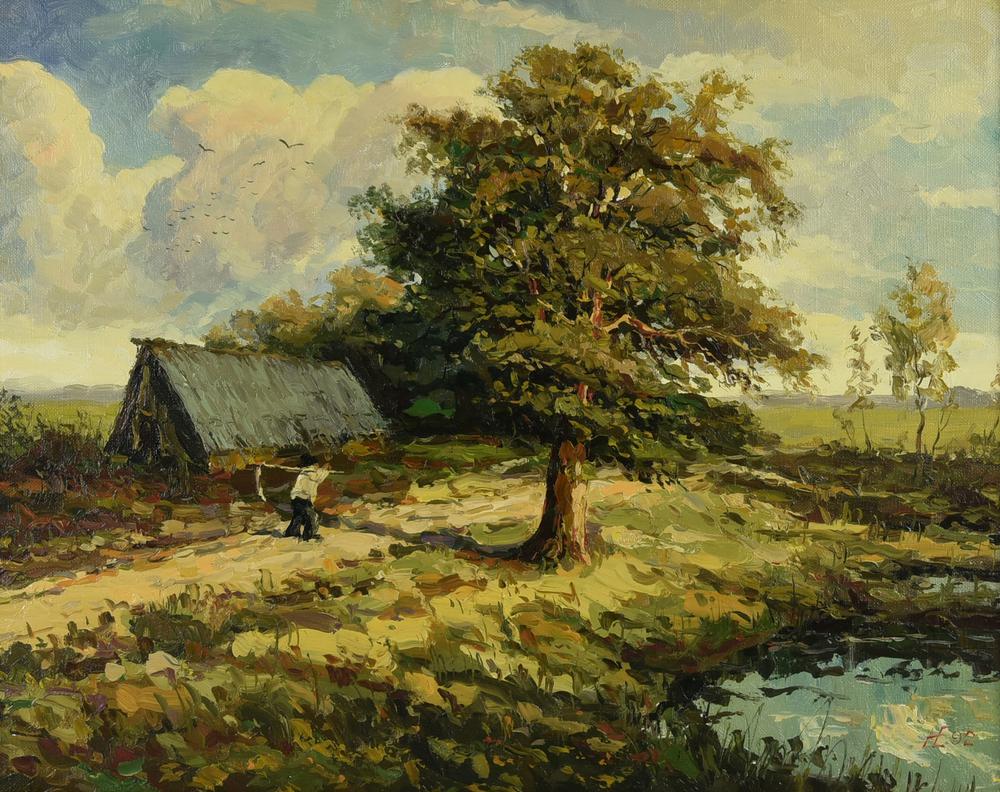 Ignoto AGRICOLTORE olio su tela, cm 40x50 firma e data sul retro: firma,...