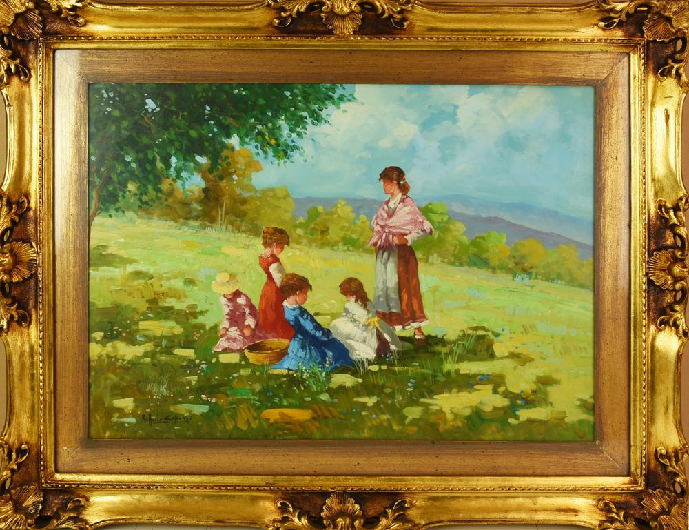 Raffaele Capozzi GITA NEL PARCO olio su tela, cm 50x70 firma sul retro:...