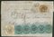 Antichi Stati Italiani - Stato Pontificio - Lettera (4c) + 4 baj + striscia di cinque esemplari del 7 baj azzurro