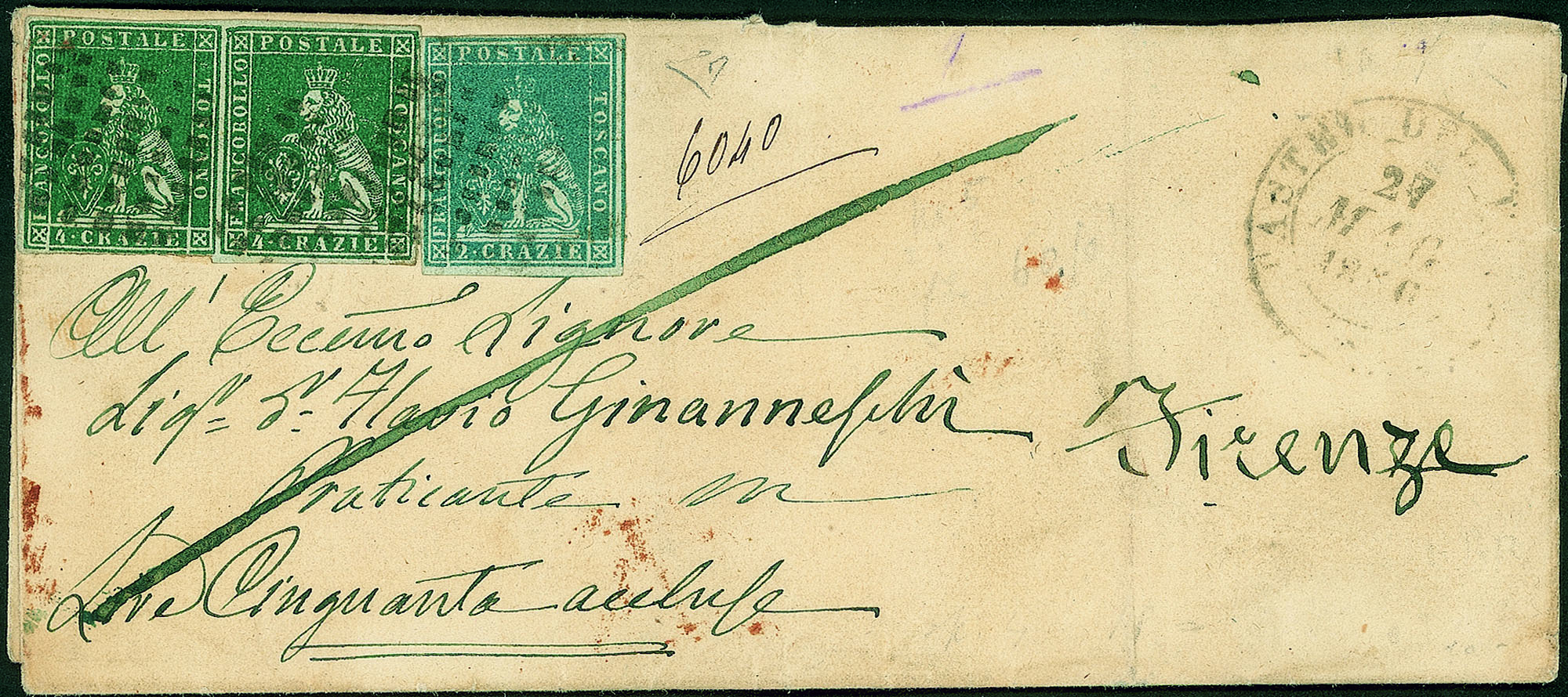 Lot 258 | Antichi Stati Italiani - Toscana - Castel del Piano (muto a punti piccoli ripetuto tre volte P.ti R2 + doppio cerchio) su 2 crazie più coppia del 4 crazie (5 + 6)