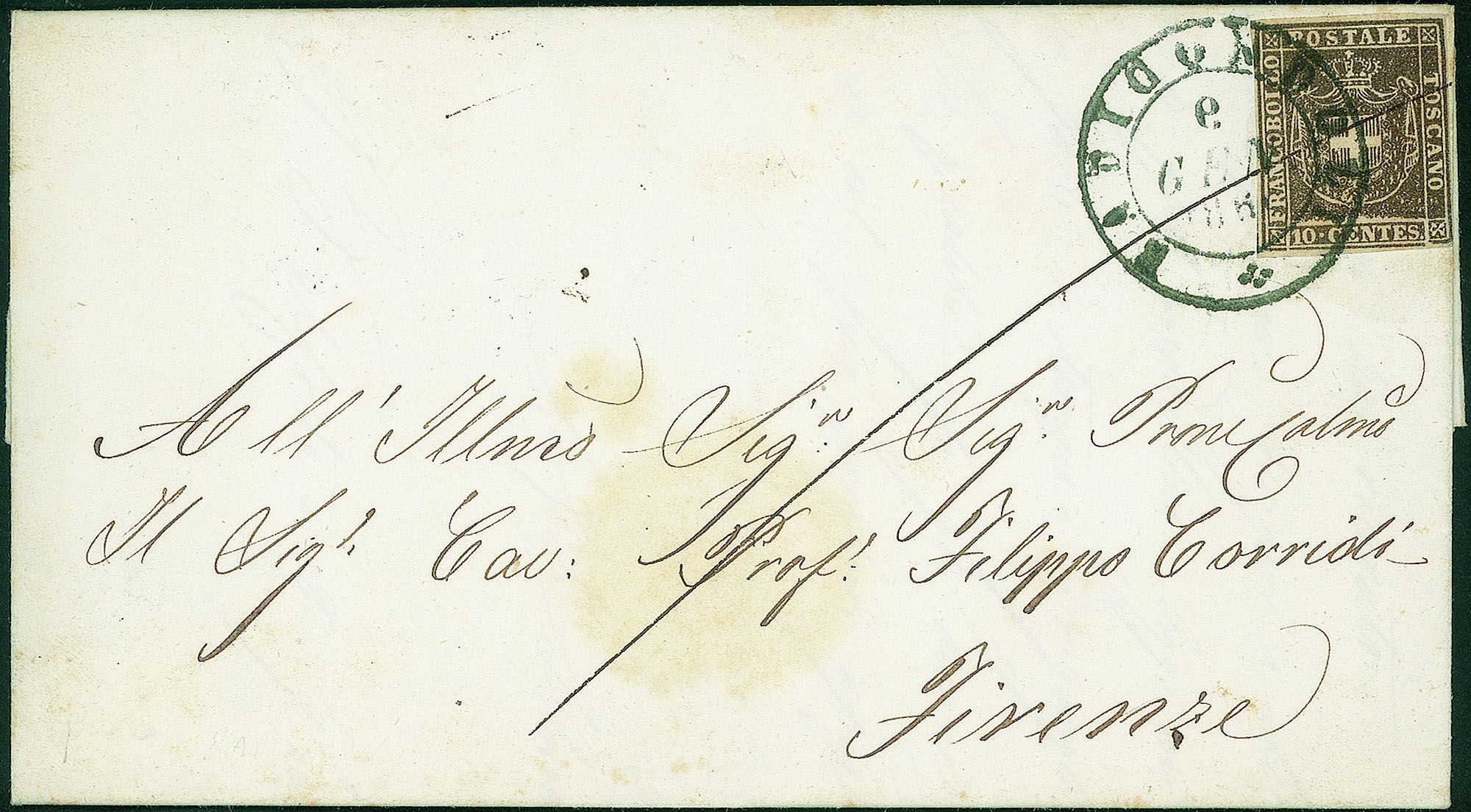Antichi Stati Italiani - Toscana - Governo Provvisorio - Radicondoli (doppio cerchio grande P.ti 12) su 10 cent bruno (19)Su lettera per Firenze del 9.1.60