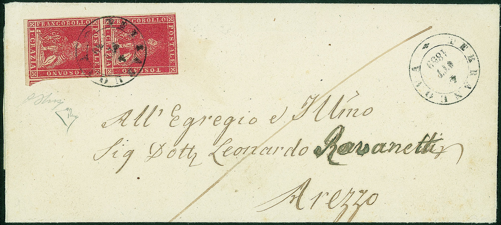 Lot 287 | Antichi Stati Italiani - Toscana - Governo Provvisorio - Terranuova (doppio cerchio piccolo P.ti R1) su coppia del 1 crazia (12)