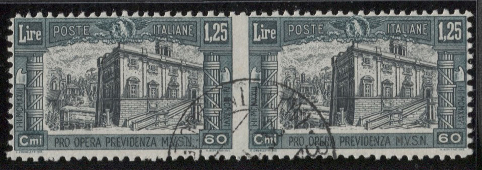 Italia - Regno - Milizia I° 1,25 + 60 lire (208c)1926 Regno - Milizia I° 1,25 + 60 lire - coppia orizzontale non dentellata in mezzo - cert. Sorani - (208c)