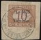 Uffici Postali all'Estero - 10 cent (T5a)Frammento recante un 4 su 10 cent Tasse con soprastampa a mano - bene dentellato - 2 soli noti - GRANDE RARITA' - cert. AD + cert. ED + cert. Sorani + cert. Bolaffi - (T5a)
