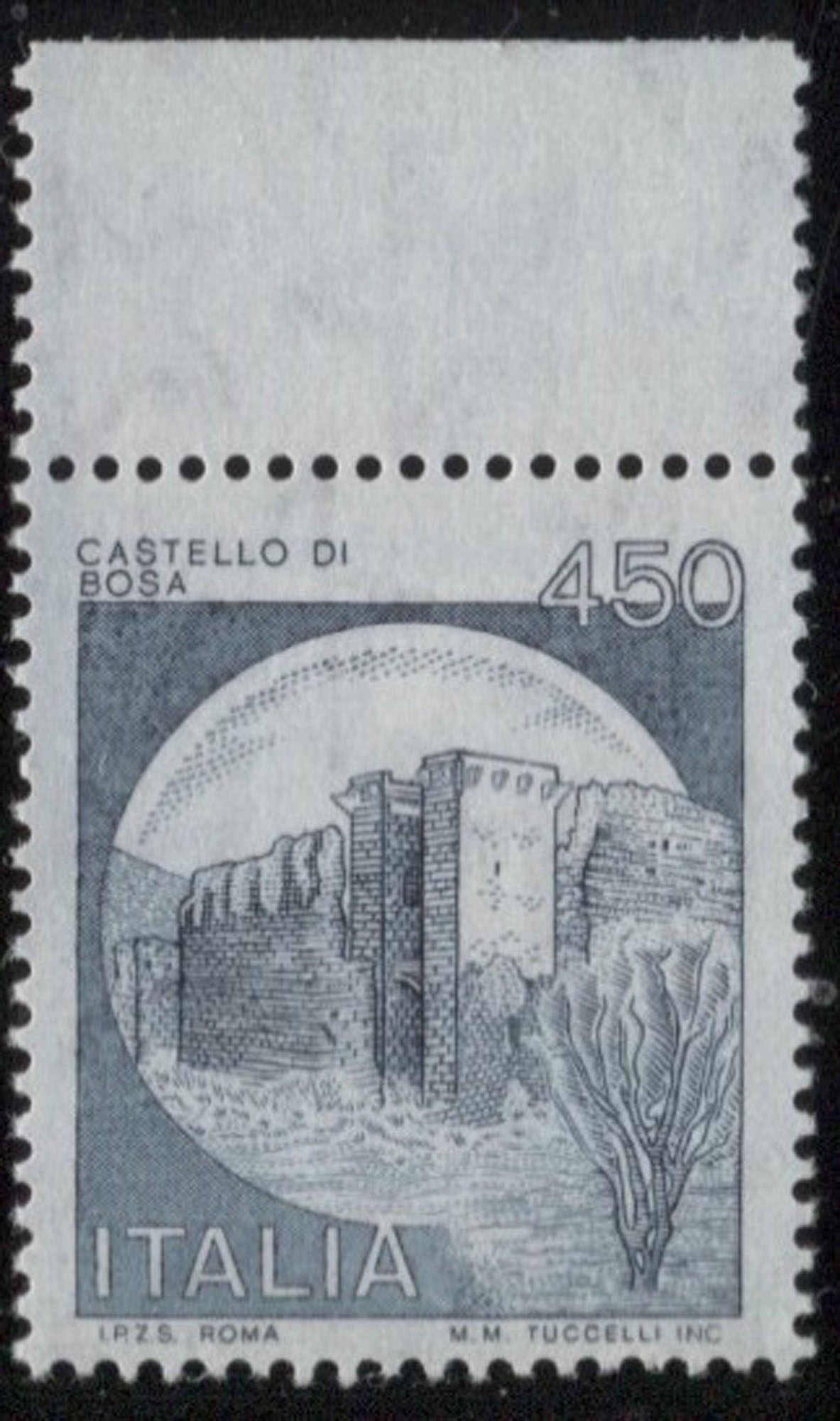 Repubblica - 450 lire (Bolaffi 1626 B)1980 Repubblica - 450 lire Castello di Bosa privo del colore rosso giallo e celeste - cert. Diena - (Bolaffi 1626 B)